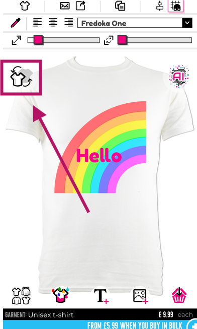 Wann s du drop klicks, dréint sech däin T-Shirt ëm, sou datt's de op der anerer Säit designen kanns.