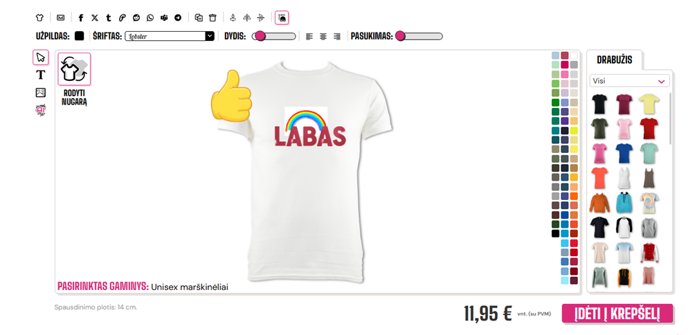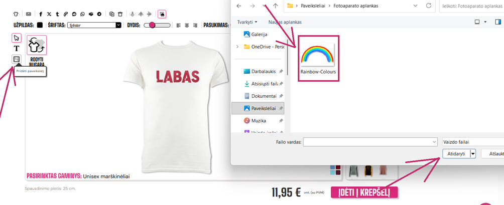 Tada jis bus įkeltas į dizainerį jums (bus įkėlimo juosta, kol tai bus atsisiunčiama) Kai tai bus atsisiųsta, jūsų vaizdas bus rodomas ant marškinėlių.