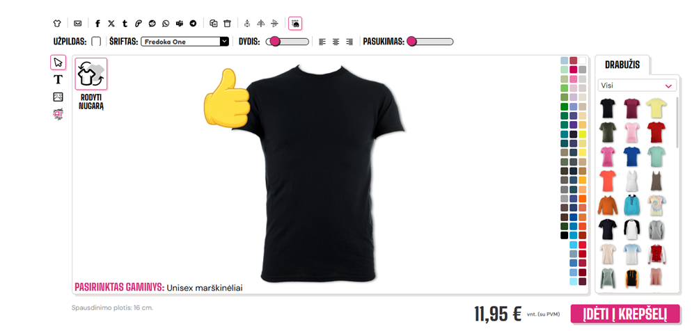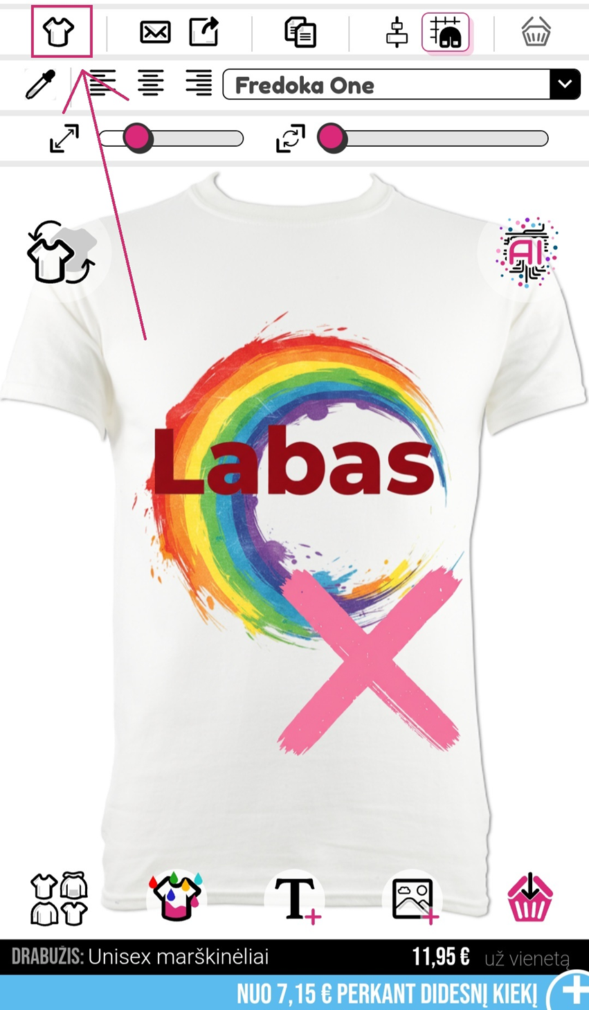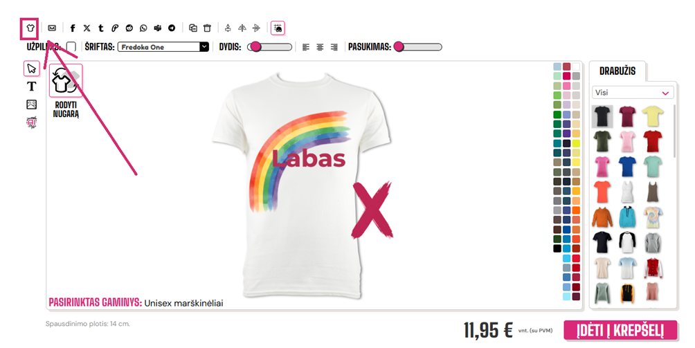 Jei nesate patenkinti savo dizainu ir norite pradėti iš naujo, tiesiog spustelėkite mažą marškinėlių piktogramą viršutiniame kairiajame kampe.