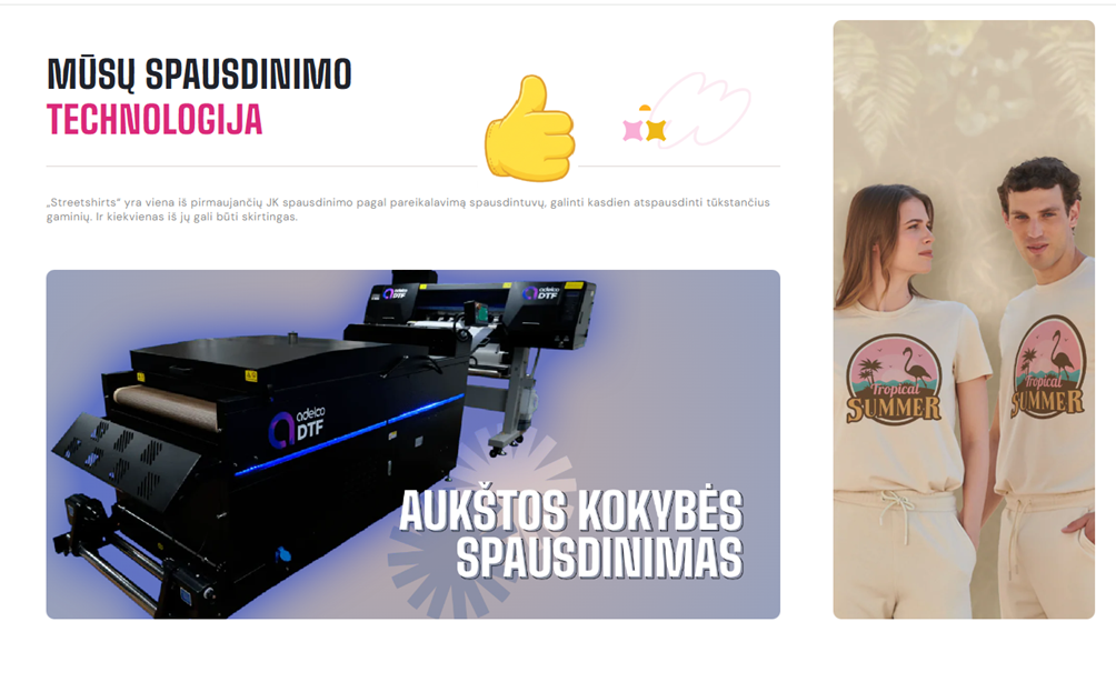 Norėdami sužinoti daugiau apie mūsų spausdinimo technologiją, eikite į tris juostas kairiajame kampe.