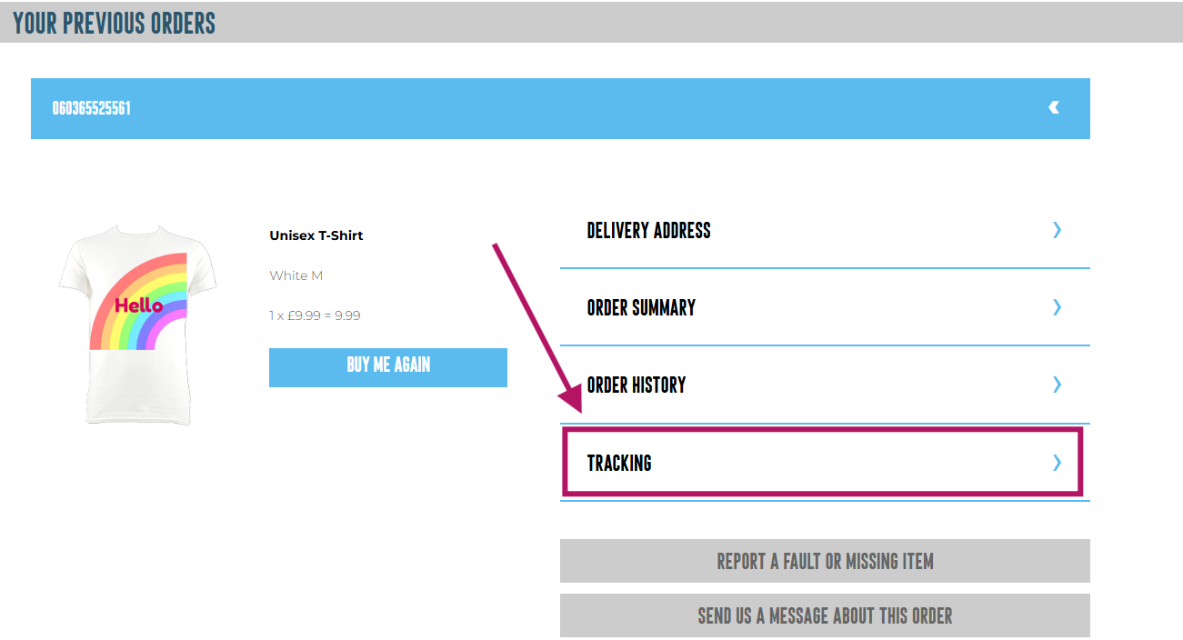 Norėdami sekti savo užsakymą, galite prisijungti ir pamatyti užsakymo informaciją, kur jis yra spausdinimo eilėje ir, jei taikoma, bet kokius sekimo numerius. Kai pateikiate pirmąjį užsakymą pas mus, automatiškai sukuriama paskyra, į kurią galite prisijungti. Jei spustelėsite tris juostas kairėje pusėje, tada „PAGALBA IR INFORMACIJA“ ir tada spustelėkite „PASKYRA“.