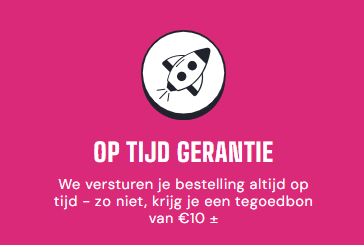 We komen de verzendraming na die in je winkelmandje en op je orderbevestigingsmail staat, en zo niet, krijg je een cadeaubon van € 10 die je kunt gebruiken bij een toekomstige aankoop. Er is geen contant equivalent. Deze garantie is een aanvulling op je wettelijke rechten. Niet van toepassing op bestellingen die volledig of gedeeltelijk met vouchers zijn betaald.