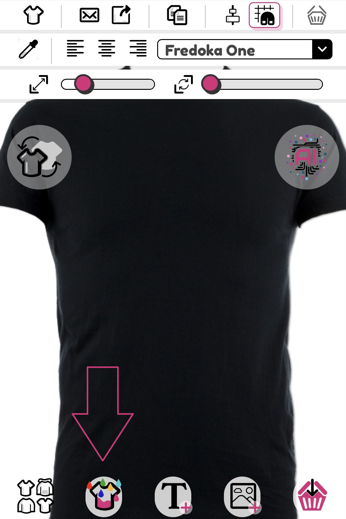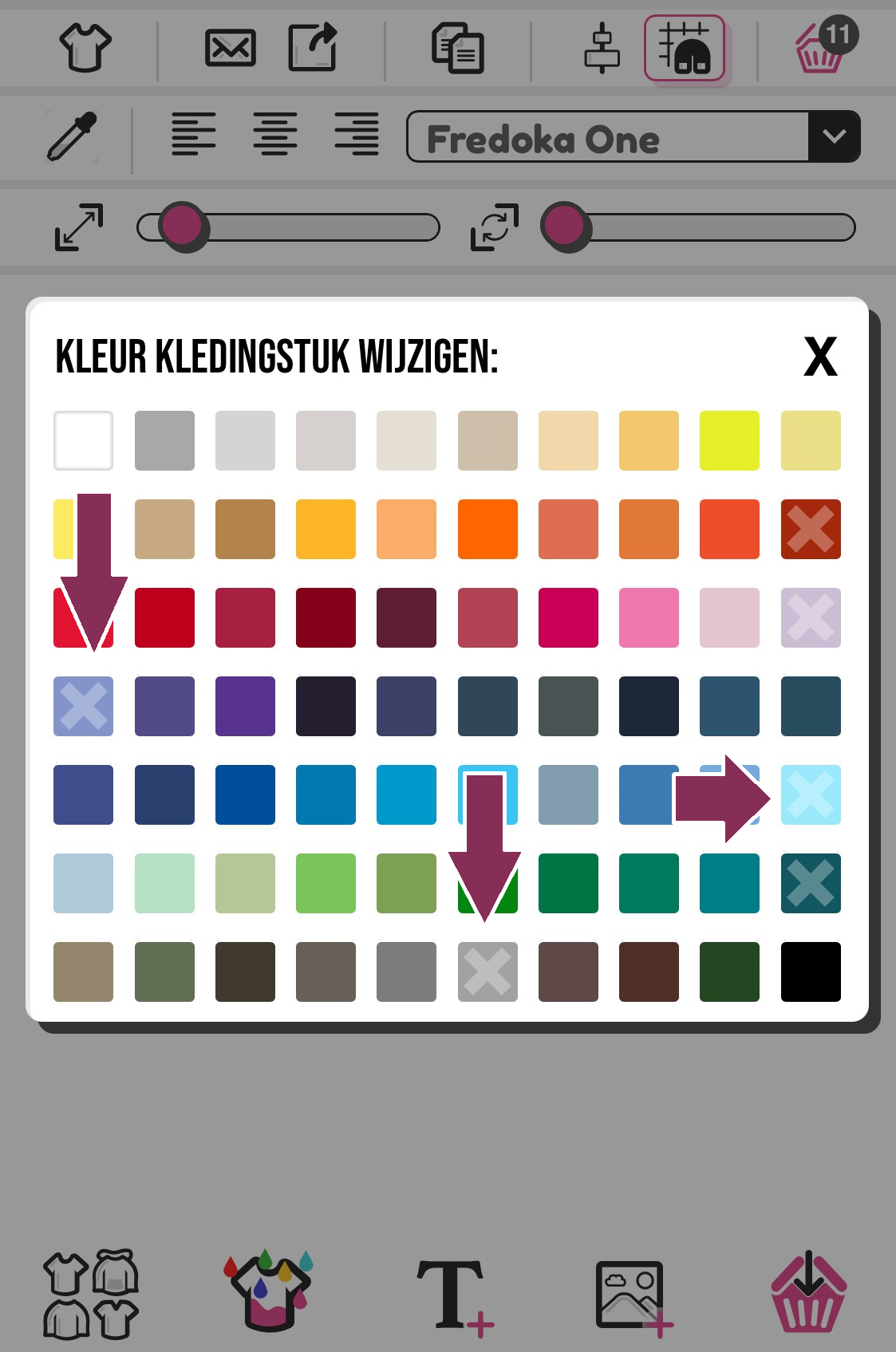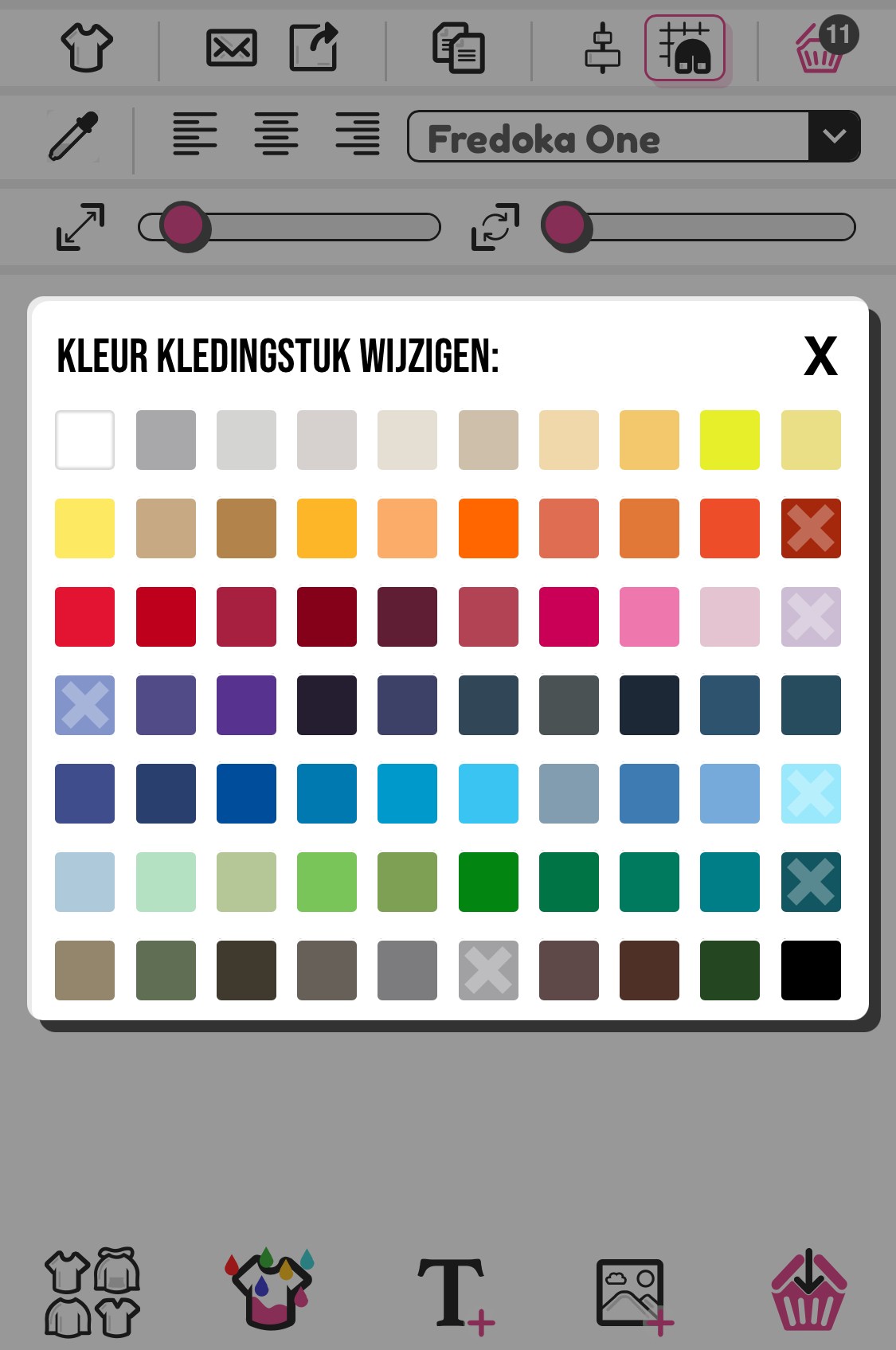 Om de kleur van je kledingstuk te veranderen, tik op de T-shirt kleurkiezer onderaan de ontwerper.