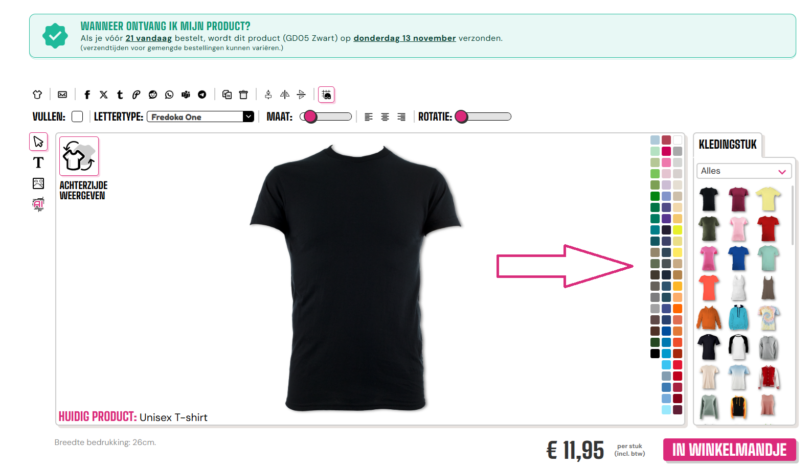 Om de kleur van je kledingstuk te veranderen, moet je een kleurkeuze aan de rechterkant selecteren: