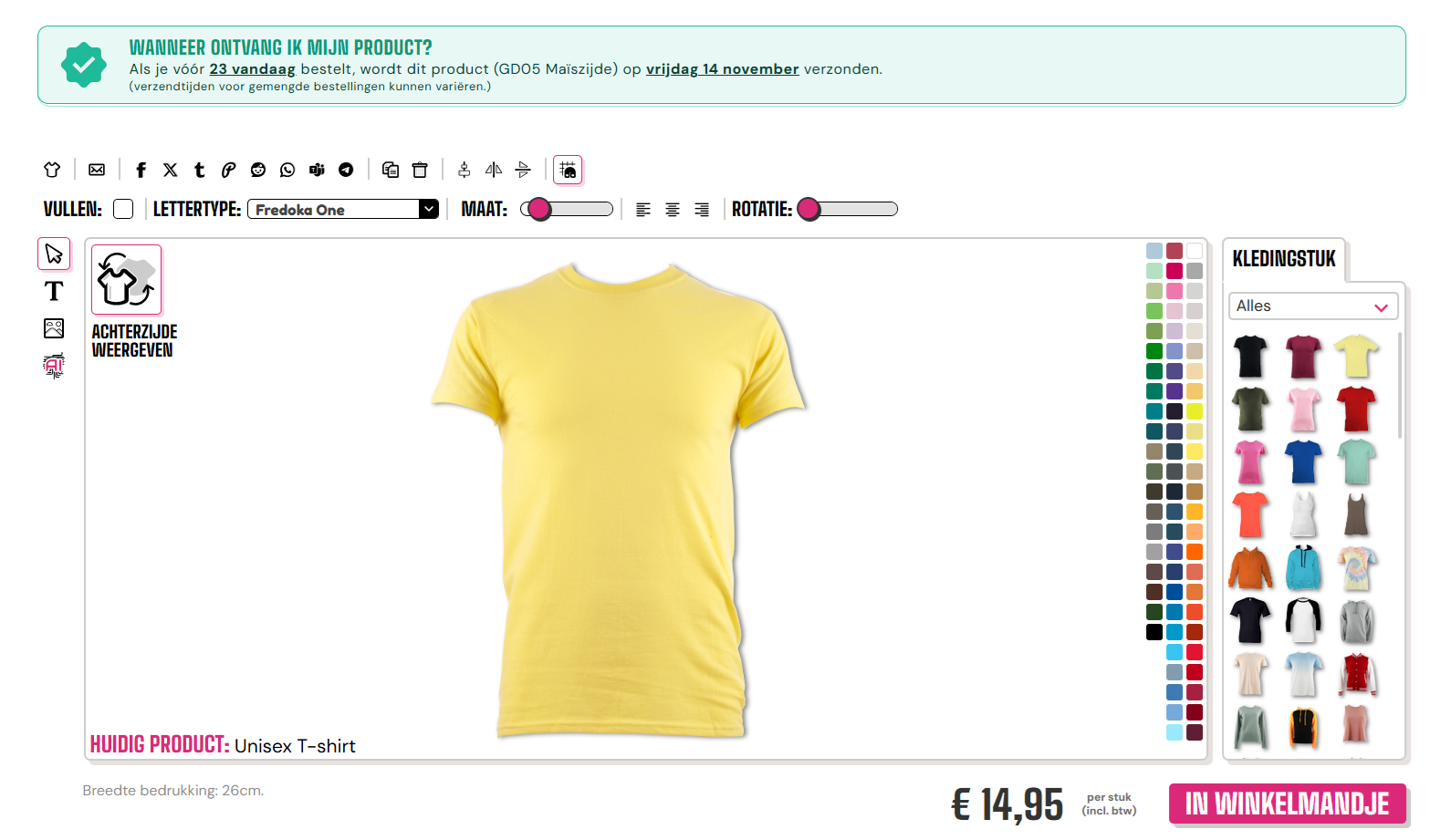 Tik op de gewenste kleur en dan zal de kleur van het T-shirt veranderen.