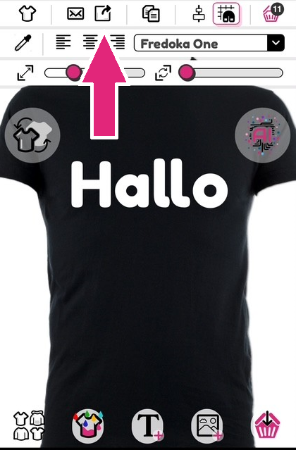 Om je ontwerp op social media te uploaden, tik je op de deelknop (aangegeven met de pijl hieronder) en selecteer je vervolgens het platform waarop je wilt delen.