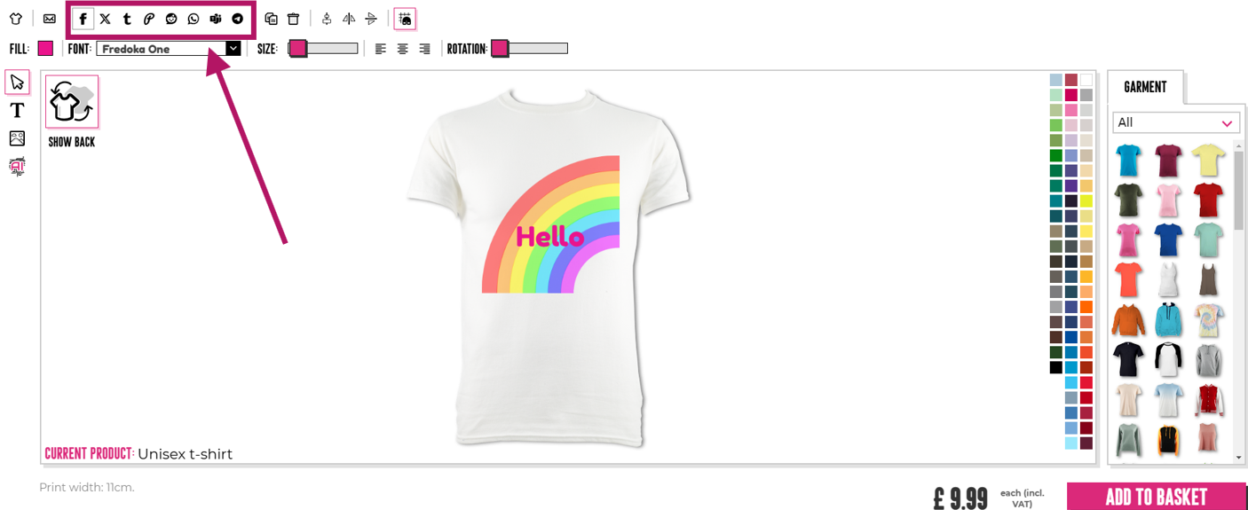 Aby przesłać swoje projekty na media społecznościowe, musisz kliknąć przycisk udostępniania (pokazany poniżej strzałką), a następnie wybrać platformę, na którą chcesz udostępnić.