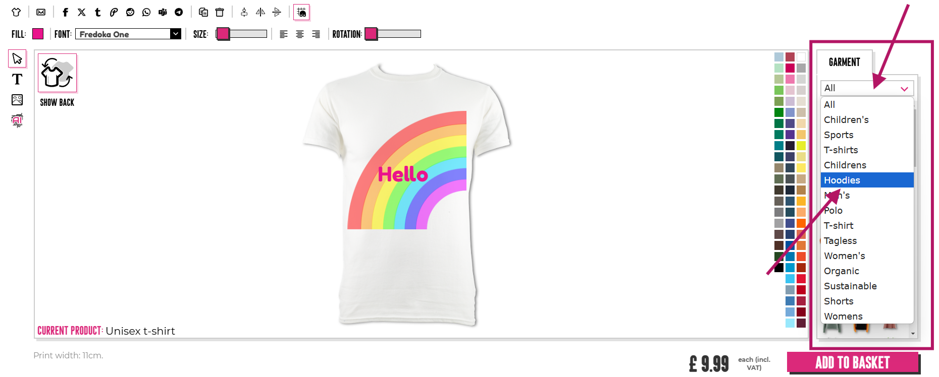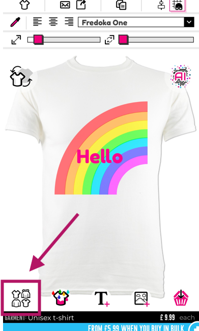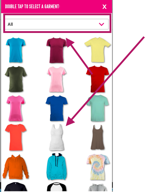 Kiedy najedziesz myszką, pojawi się nazwa ubrania i cena za druk jednostronny.