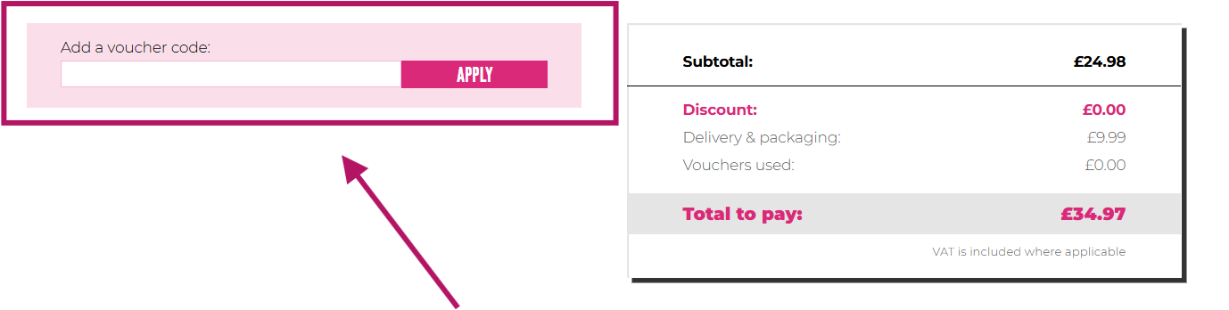 Aby dodać voucher do swojego zamówienia, przejdź do koszyka i przewiń w dół, aż znajdziesz "Dodaj kod vouchera"