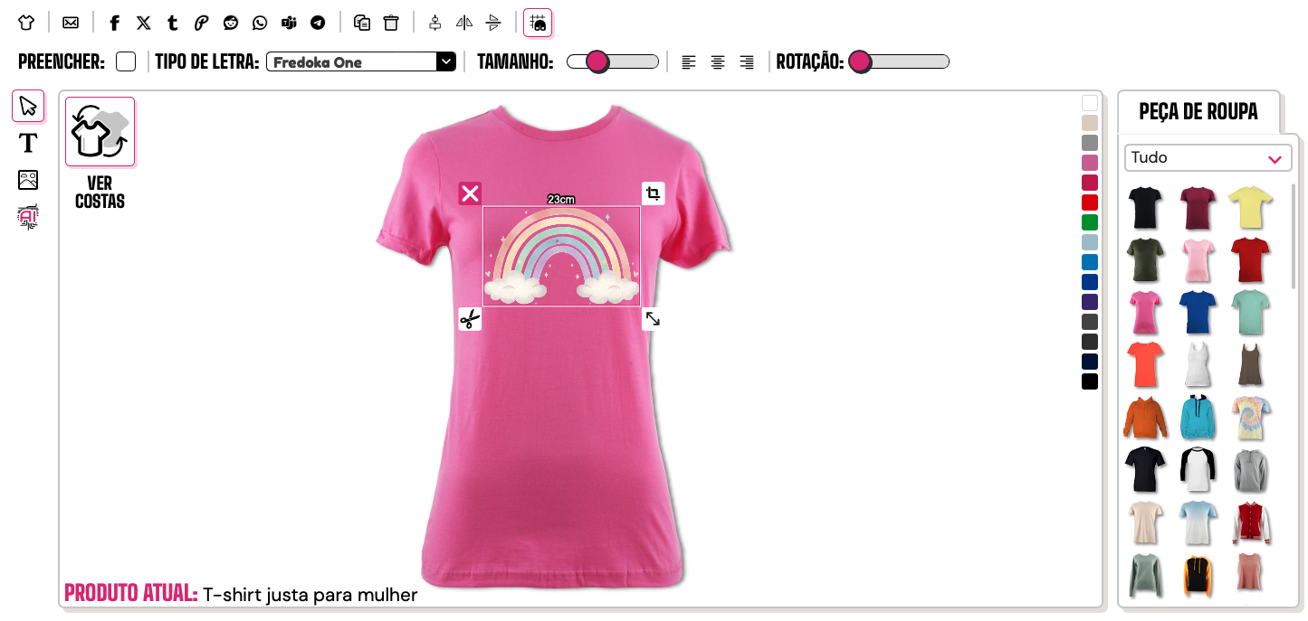 - A pré-visualização online mostra a t-shirt “como vestida”.
