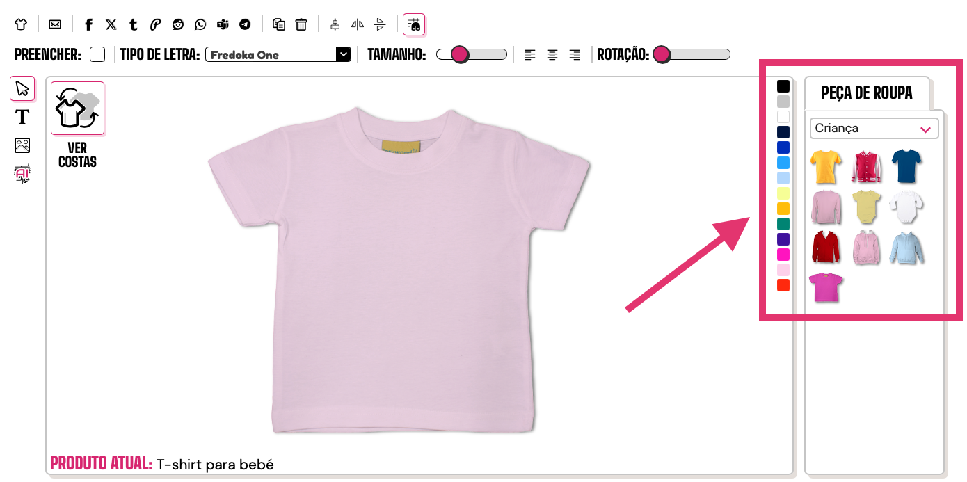 Têm tamanhos para crianças? kat 5 de Novembro de 2025 15:14 Atualizado Sim, temos! No Editor, podes selecionar a categoria "Criança" para veres todas as peças disponíveis para bebés e crianças: Artigos relacionados Onde posso encontrar informações sobre tamanhos? O que significam as medidas dos tamanhos? Que tamanho devo escolher? Porque é que a minha estampa ficou pequena? Oferecem algum serviço de amostras? Comentários 0 comentário Artigo fechado para comentários.