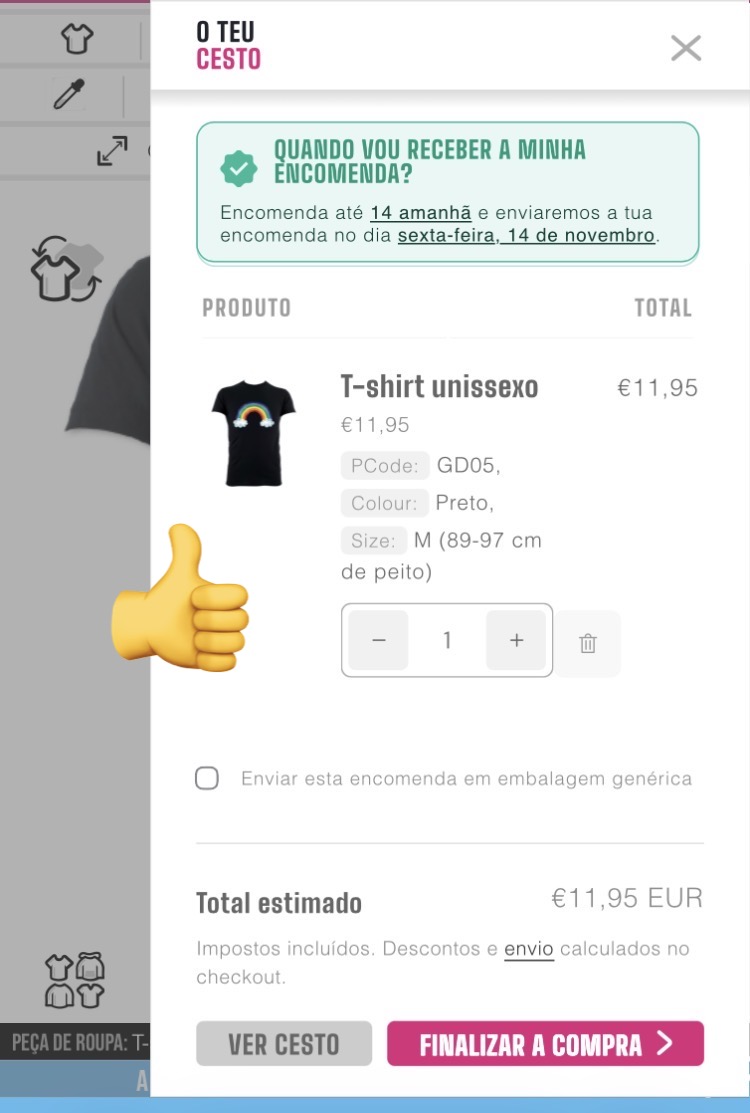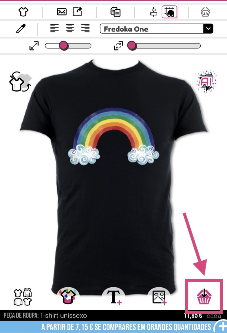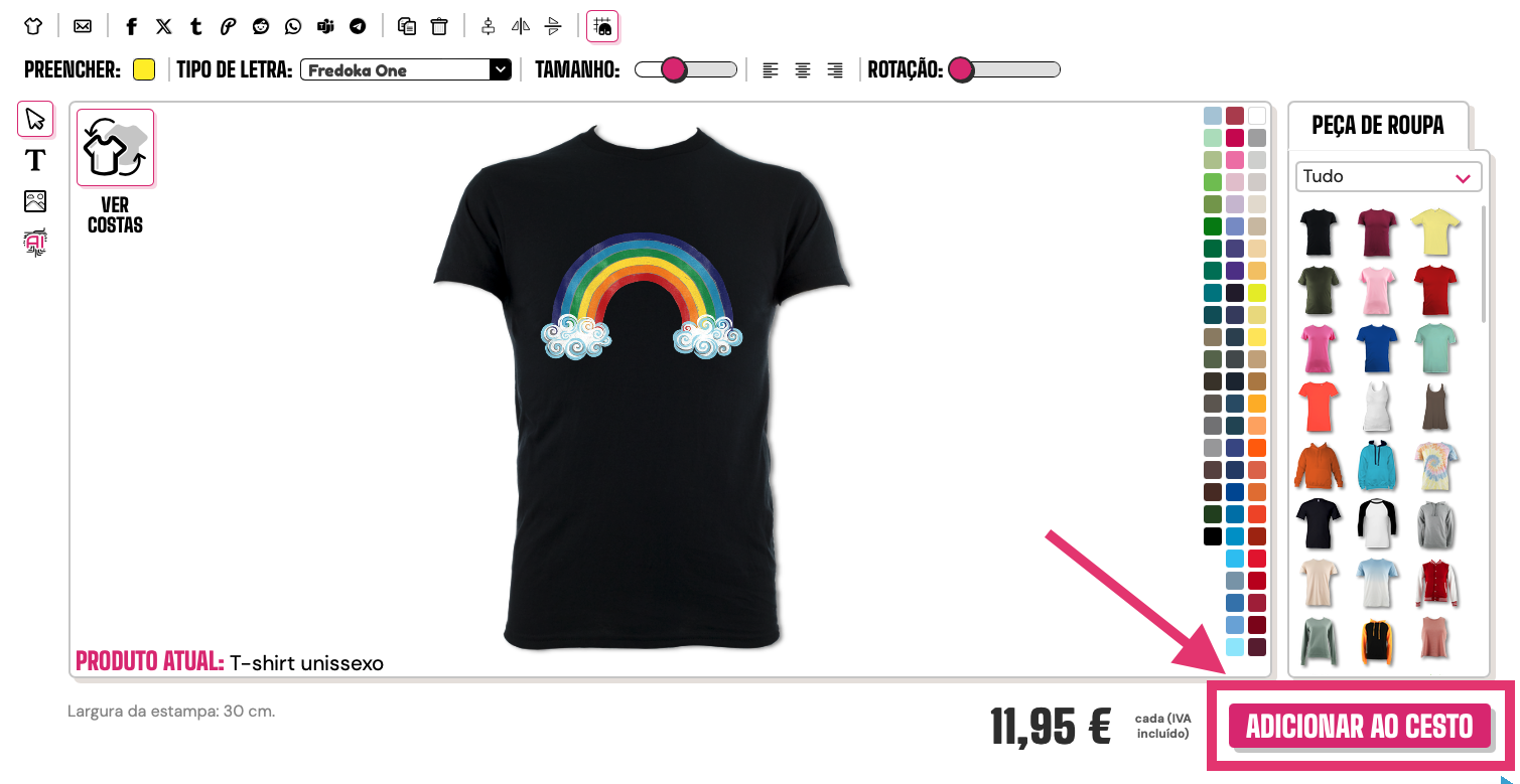 Quando estiveres satisfeito(a) com o teu design, clica no botão "Adicionar ao cesto", aqui: