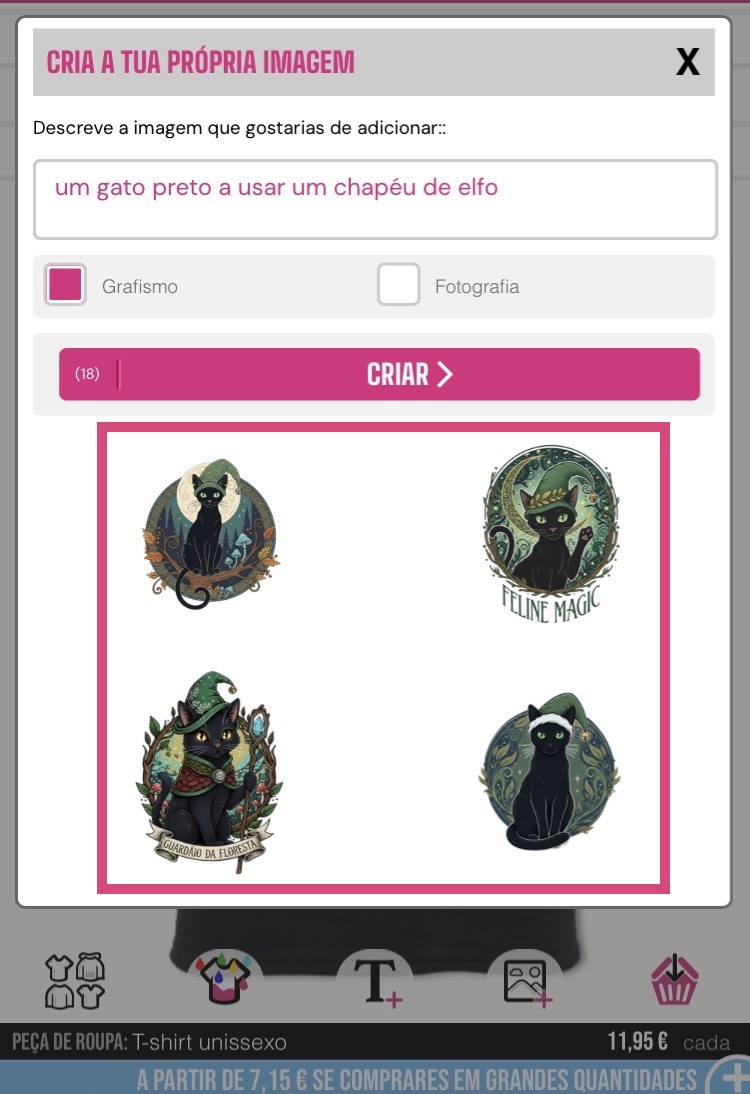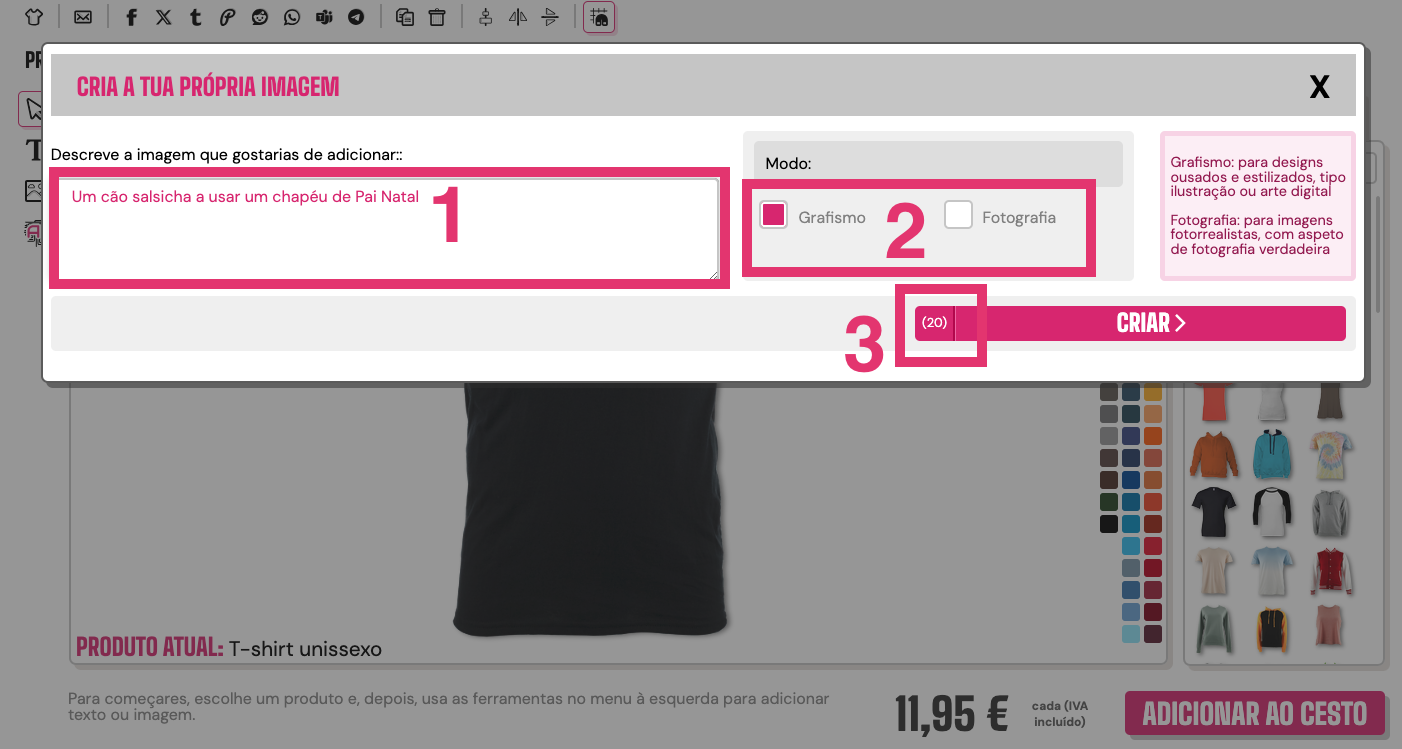 - Aqui podes selecionar se desejas uma imagem tipo ilustração digital (Grafismo) ou uma imagem realista (Fotografia).