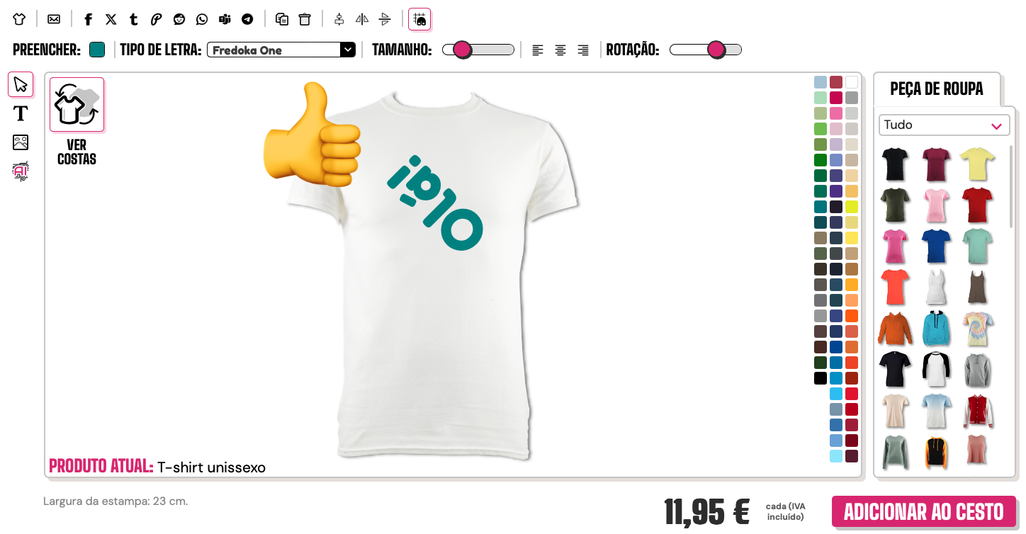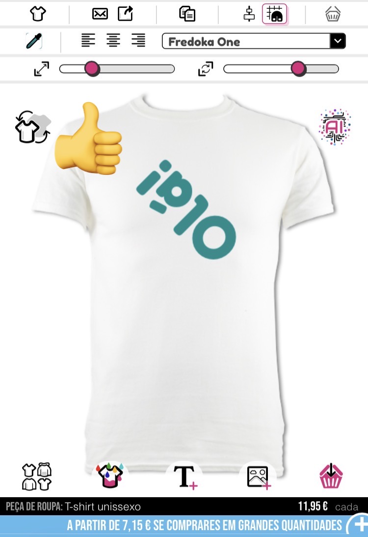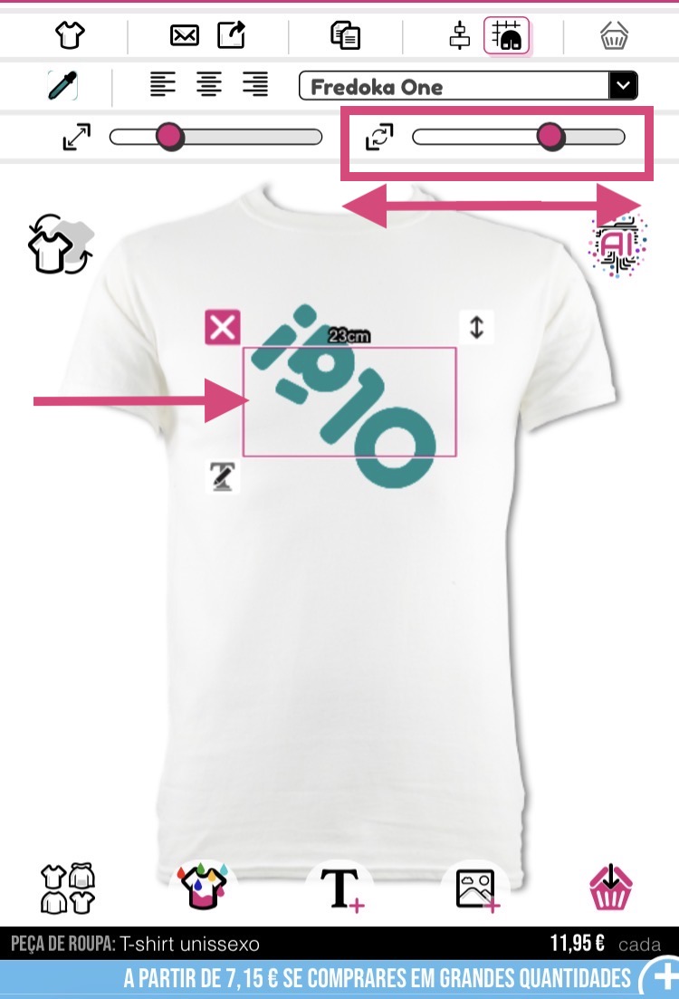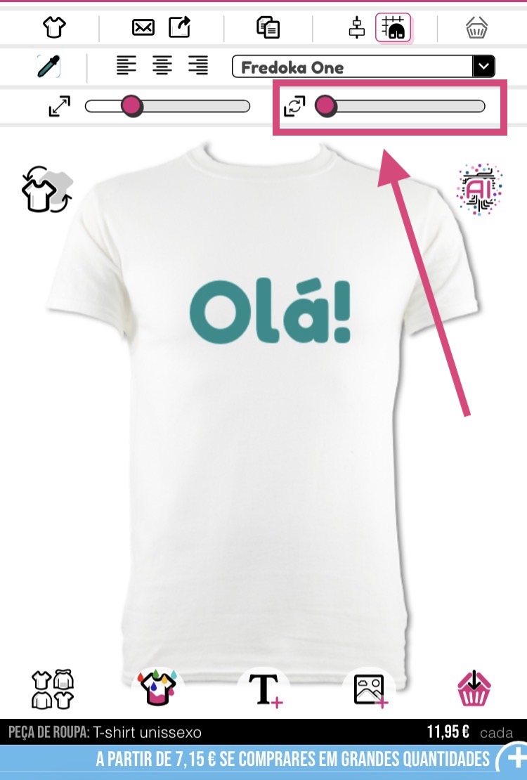 Para rodares uma imagem ou texto, deves usar o dedo e a barra deslizante no canto superior direito do Editor.