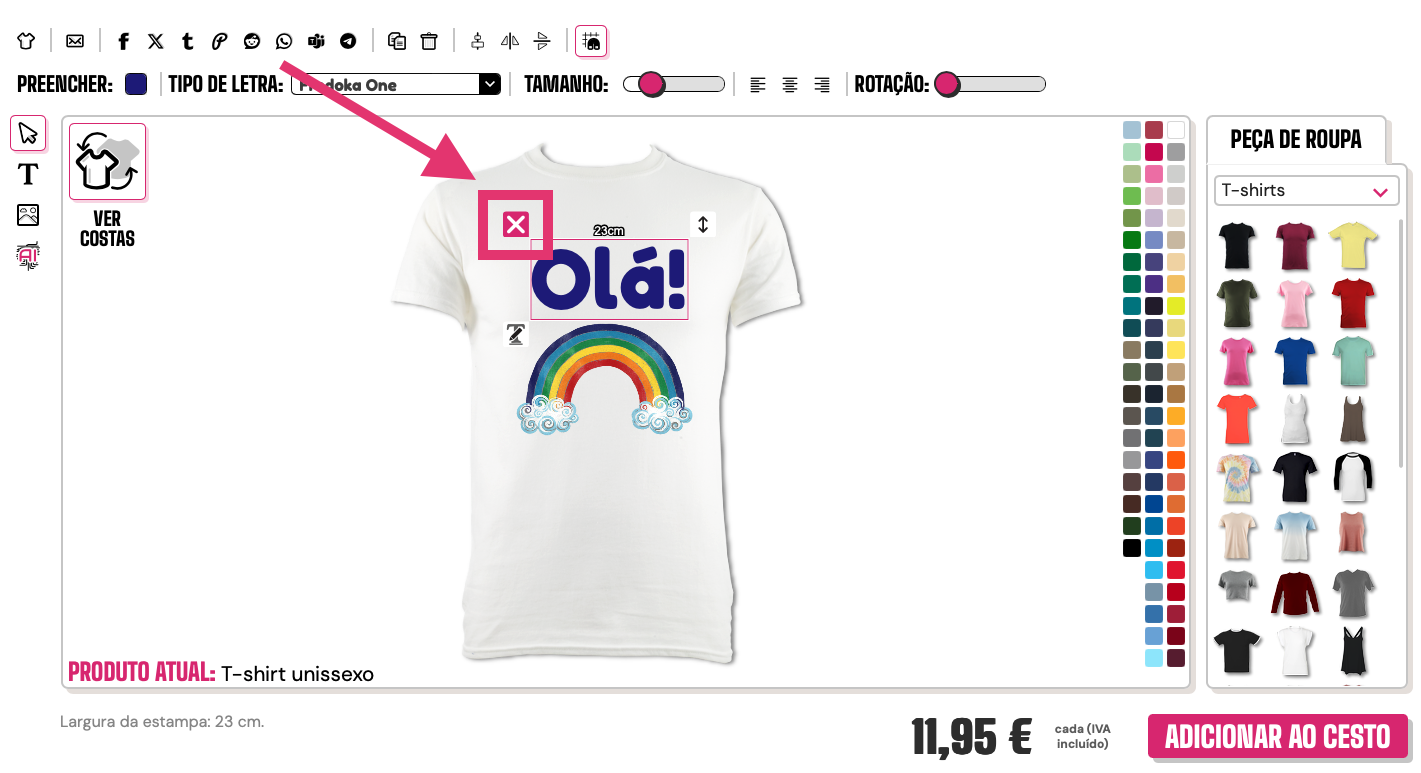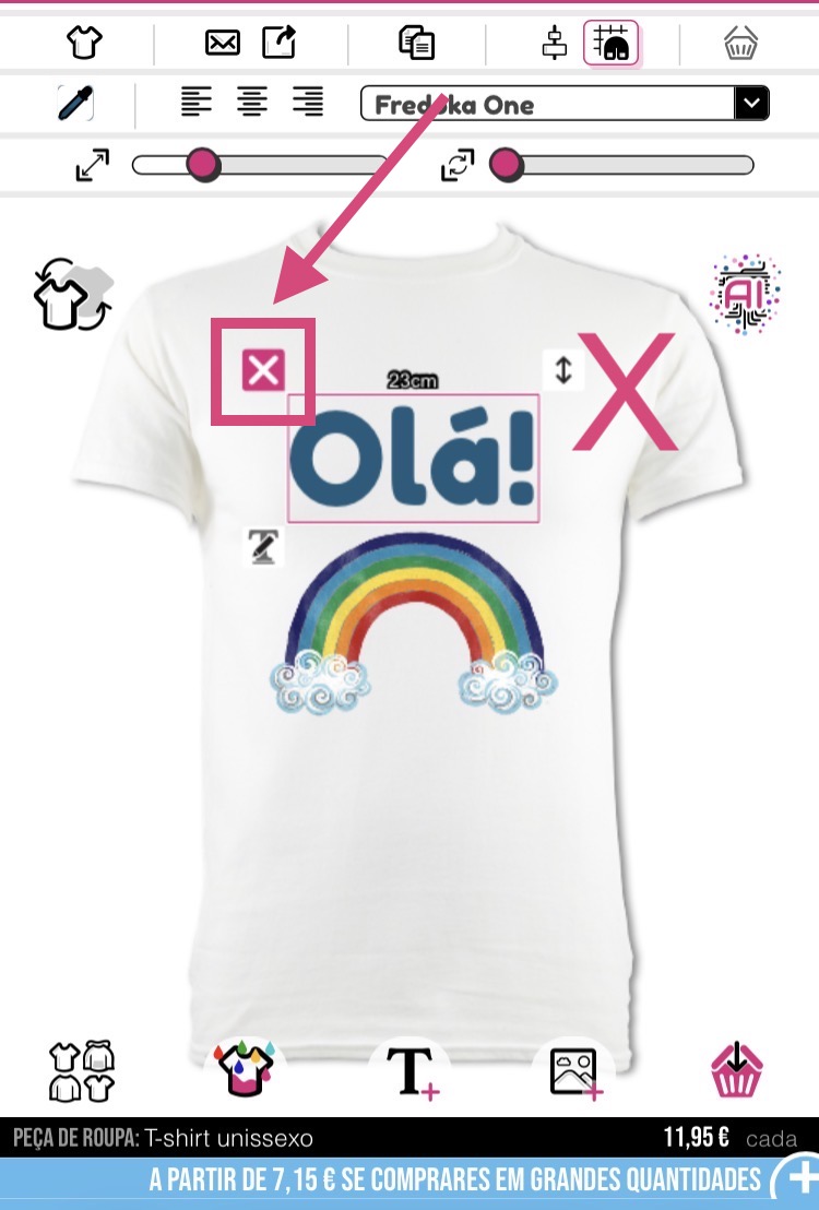 Para eliminar uma imagem ou texto indesejado, pode clicar no "X" na imagem ou texto quando destacado