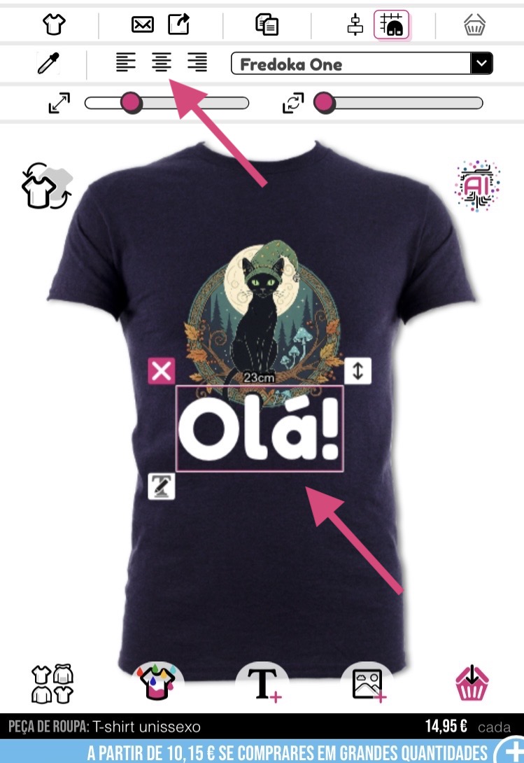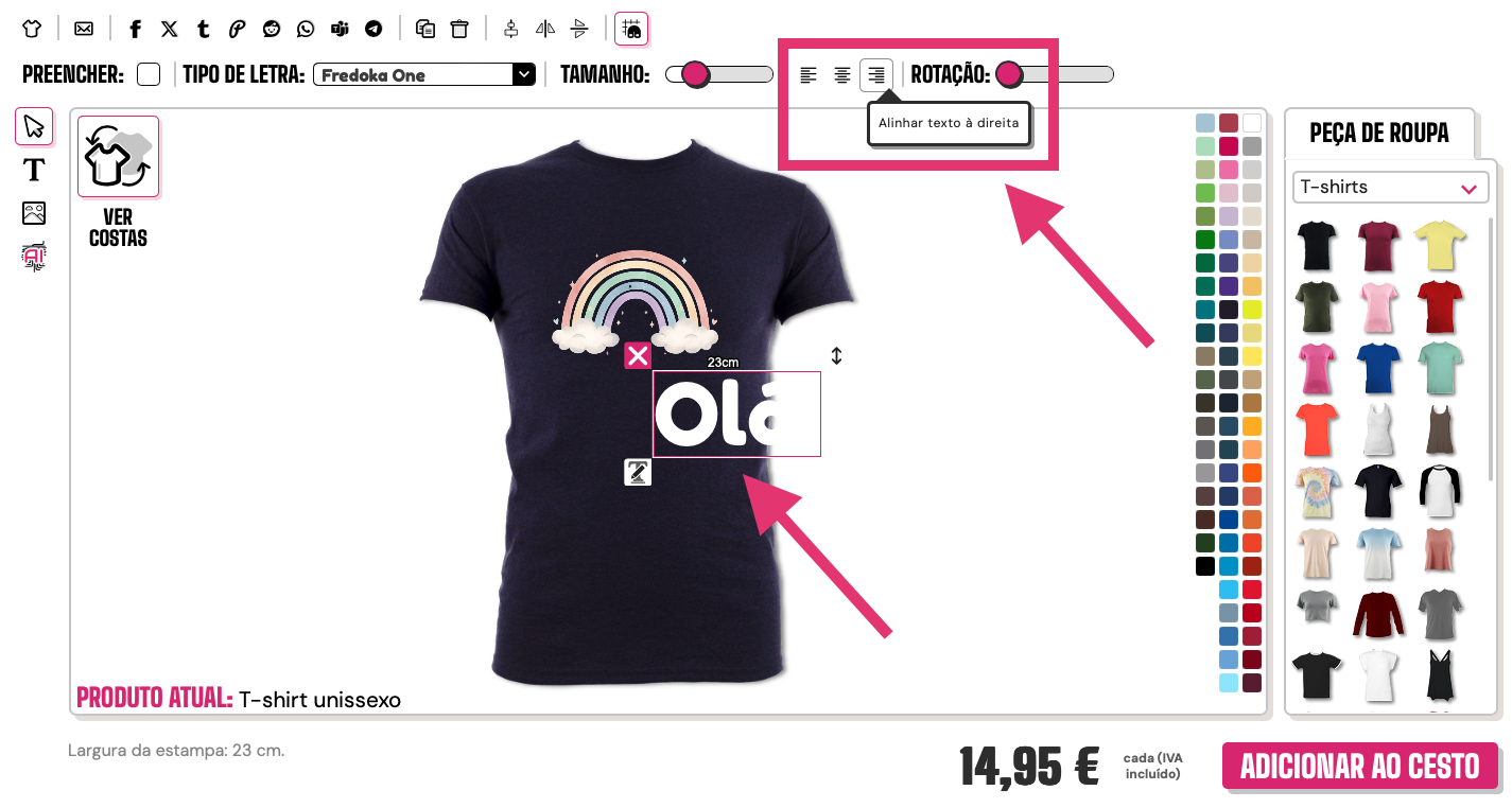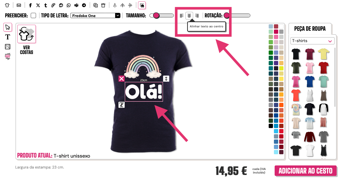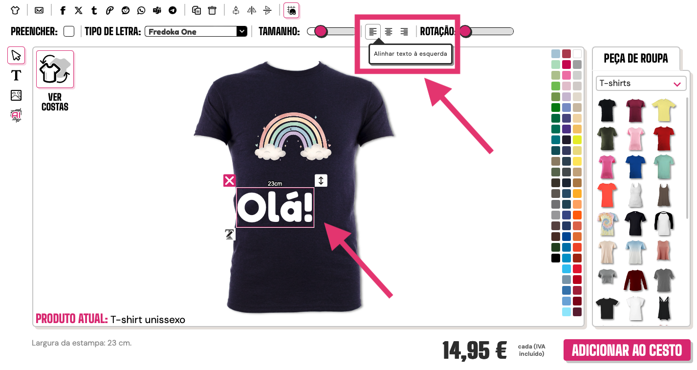 Para alinhares o texto à esquerda/centro/direita, deves clicar no botão correspondente.