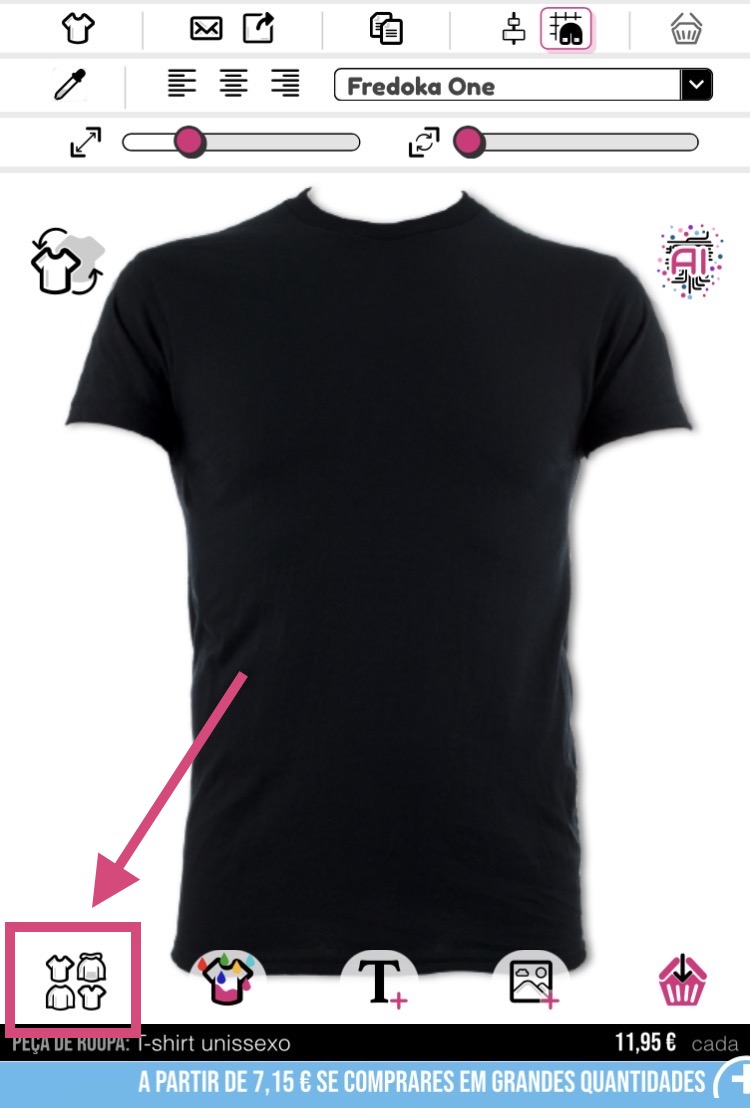 Para escolheres uma peça de roupa, clica no ícone das peças de roupa, na menu inferior.