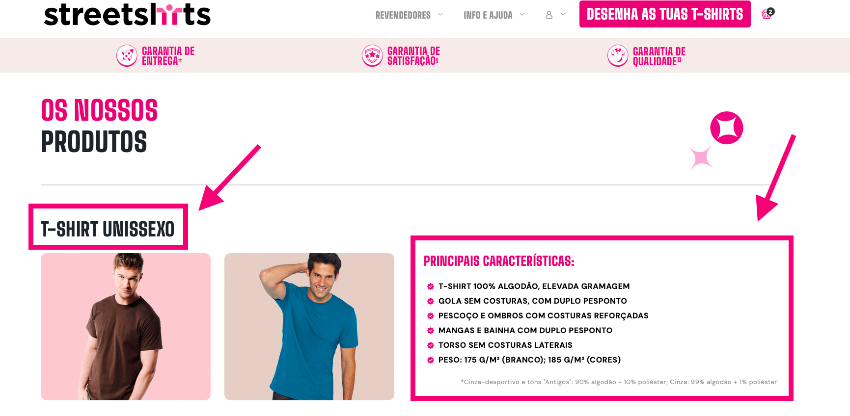 Para encontrares mais detalhes sobre os nossos produtos, clica na opção "INFO E AJUDA" no topo do ecrã e seleciona "PRODUTOS".