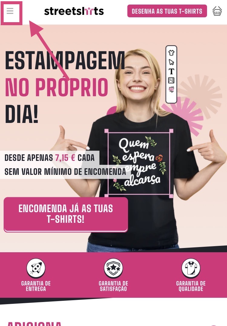 Para encontrares mais detalhes sobre os nossos produtos, toca nas três barras no canto superior esquerdo do ecrã: