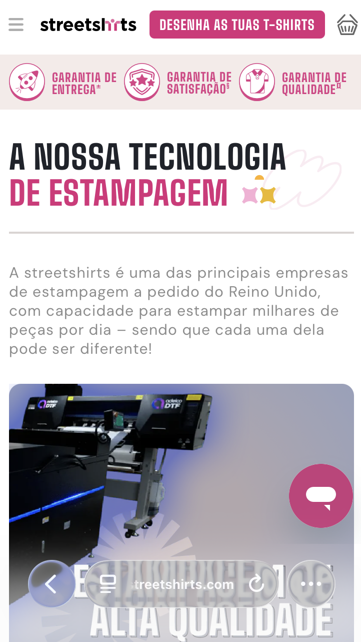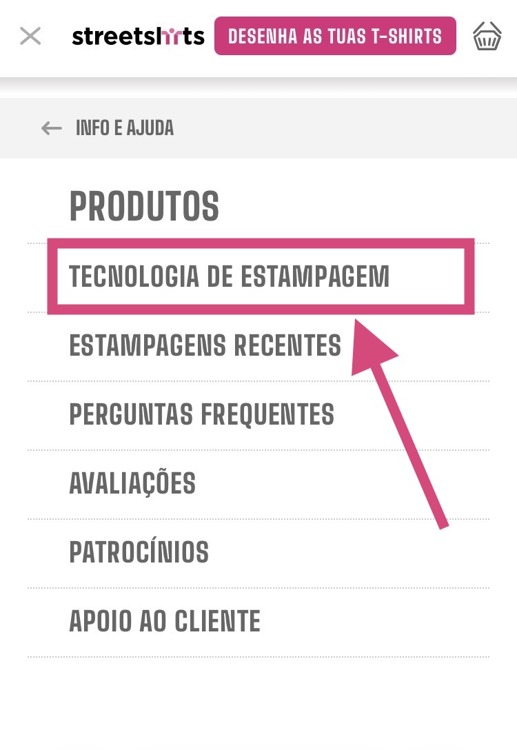 Para saberes mais sobre a nossa tecnologia de estampagem, toca nas três barras no canto superior esquerdo.
