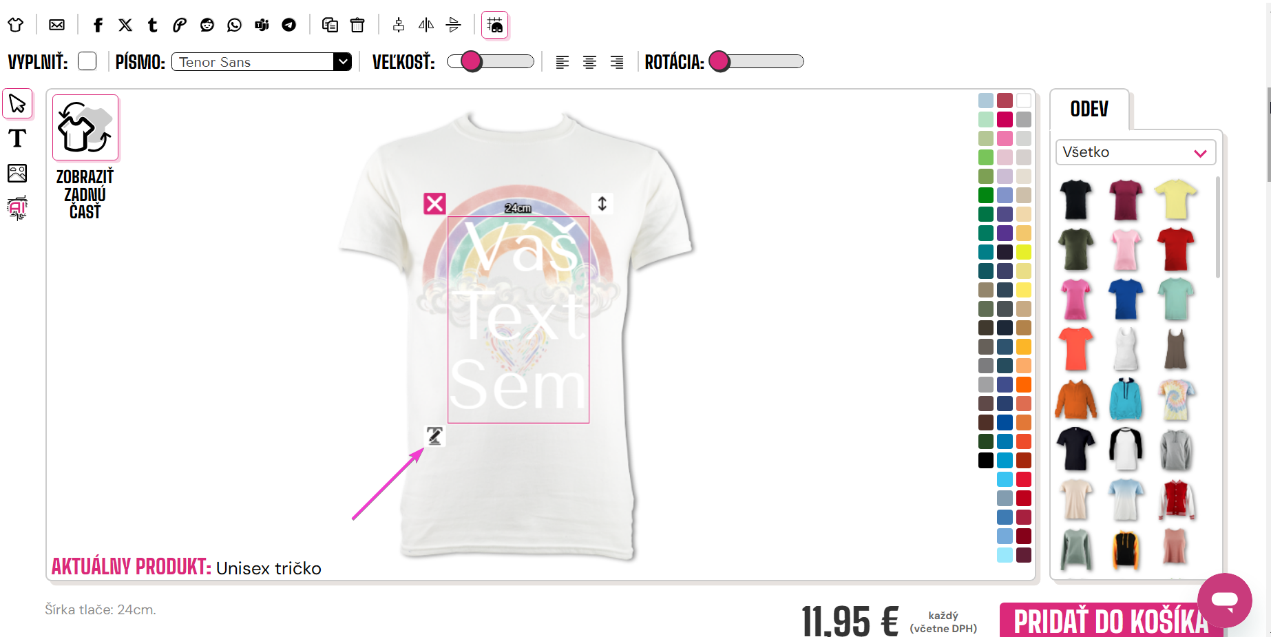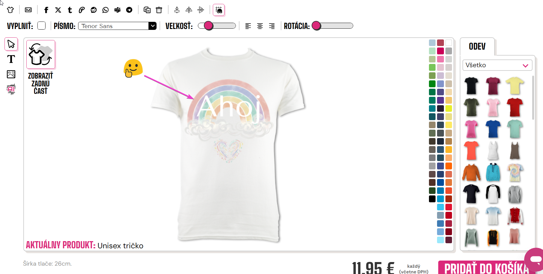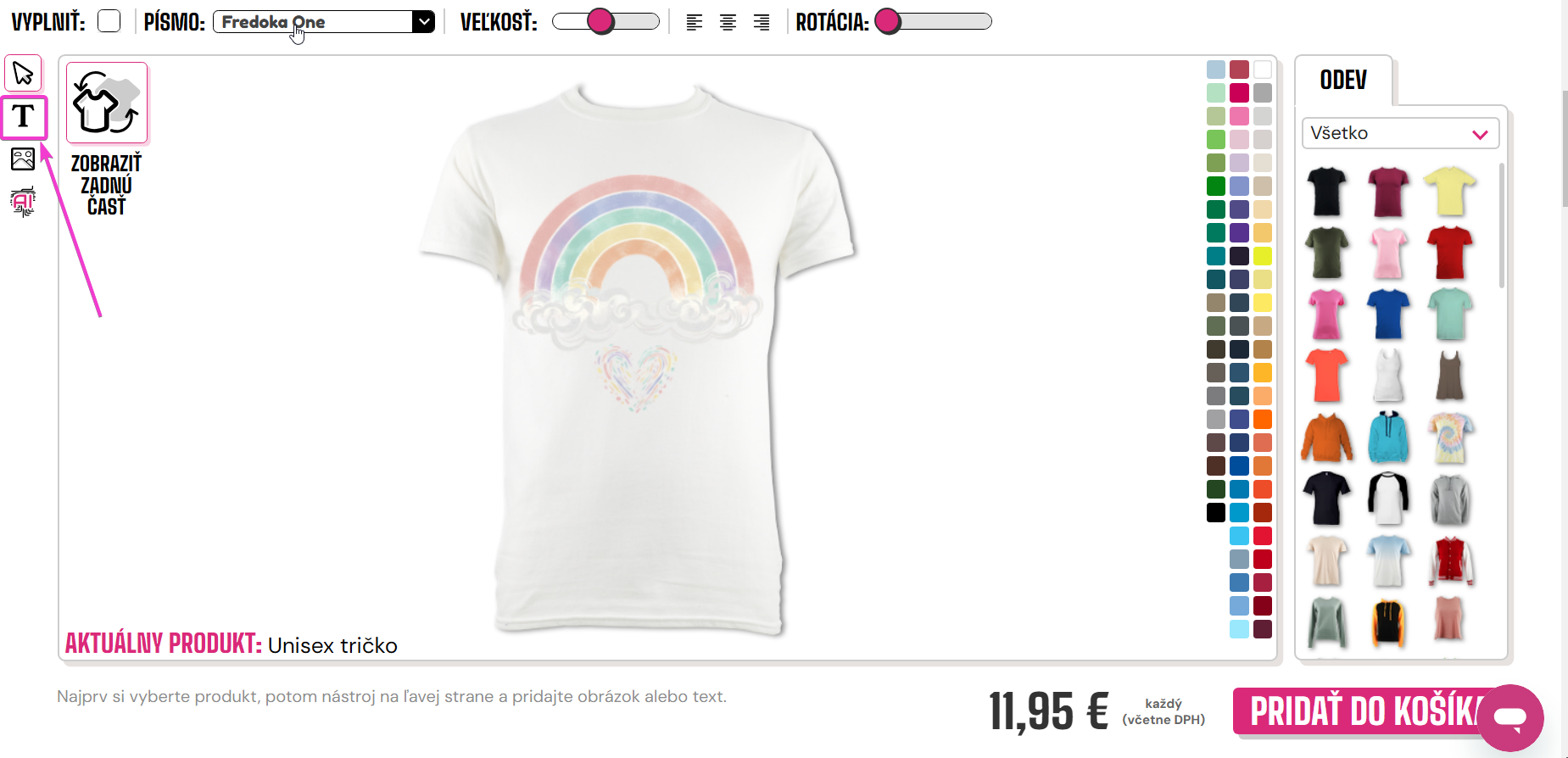 Ak chcete pridať text na váš odev, kliknite na symbol "T" na ľavej strane dizajnéra.