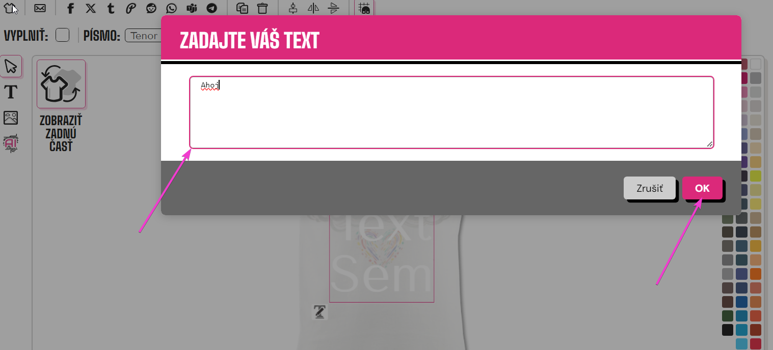 Keď ste v editačnom paneli, musíte odstrániť "váš text sem" a zadať text, ktorý chcete a kliknúť na OK.