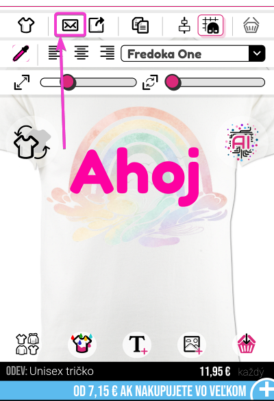 Ak si teraz nechcete kúpiť, ale nechcete prísť o svoj návrh, môžete použiť našu funkciu uloženia (obálka) umiestnenú v dizajnéri na jeho uloženie.