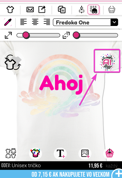 Ak chcete začať používať náš AI nástroj, kliknite na tlačidlo AI v pravom hornom rohu dizajnéra.