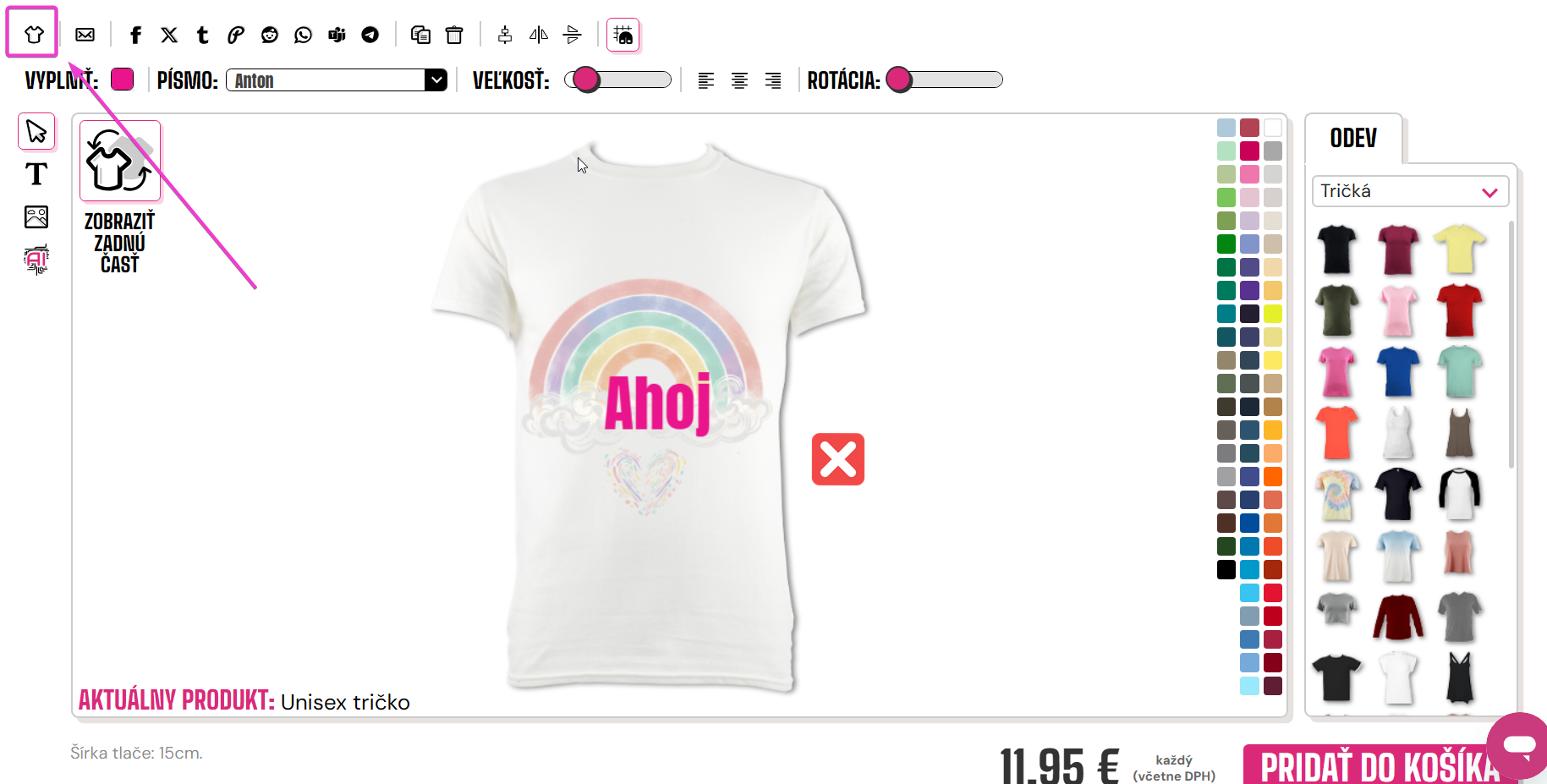 Ak chcete začať svoj návrh odznova, ak nie ste spokojní. Stačí kliknúť na malú ikonu trička v ľavom hornom rohu.