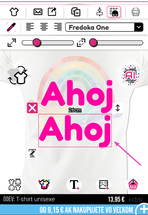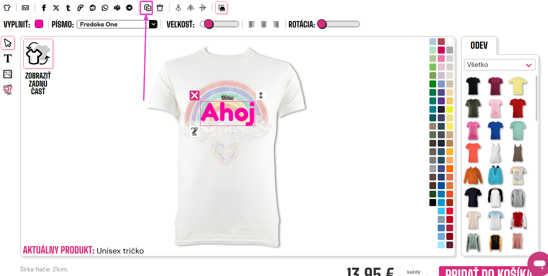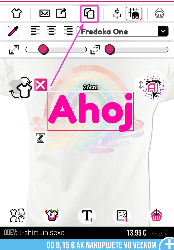 Ak chcete duplikovať obrázok alebo text, môžete kliknúť na tlačidlo kopírovania umiestnené v dizajnéri. Uistite sa, že ste vybrali svoj obrázok alebo text pred stlačením tohto tlačidla.