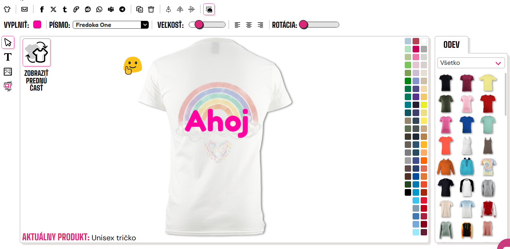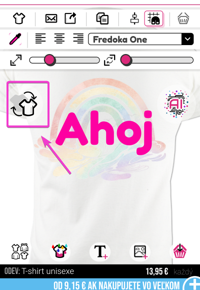 Ak chcete otočiť tričko, musíte kliknúť na ikonu otočenia trička v ľavom hornom rohu dizajnéra.