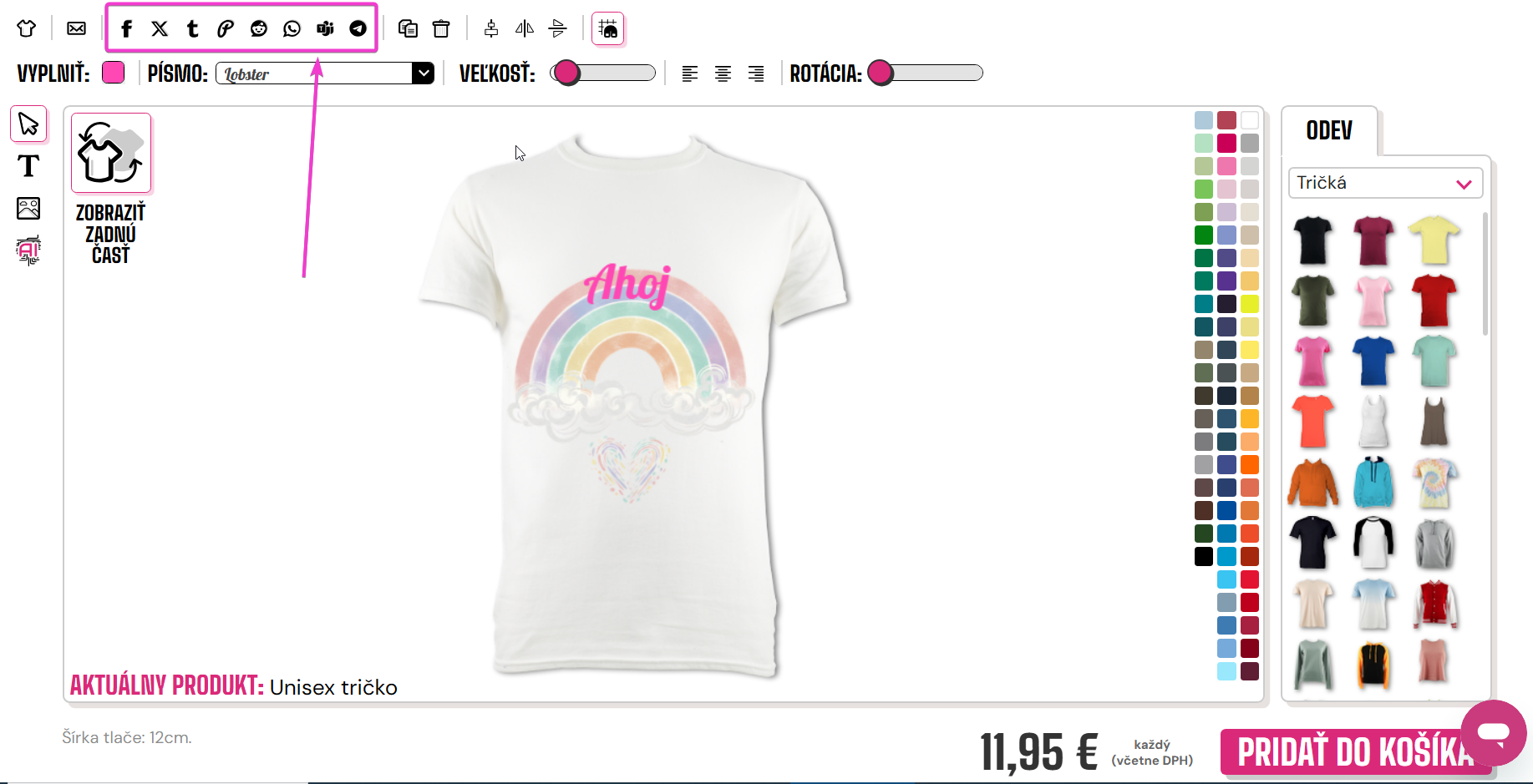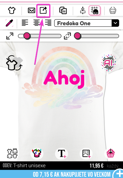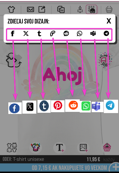 Ak chcete nahrať svoje návrhy na sociálne siete, musíte kliknúť na tlačidlo zdieľania (zobrazené so šípkou nižšie) a potom vybrať platformu, na ktorú chcete zdieľať.