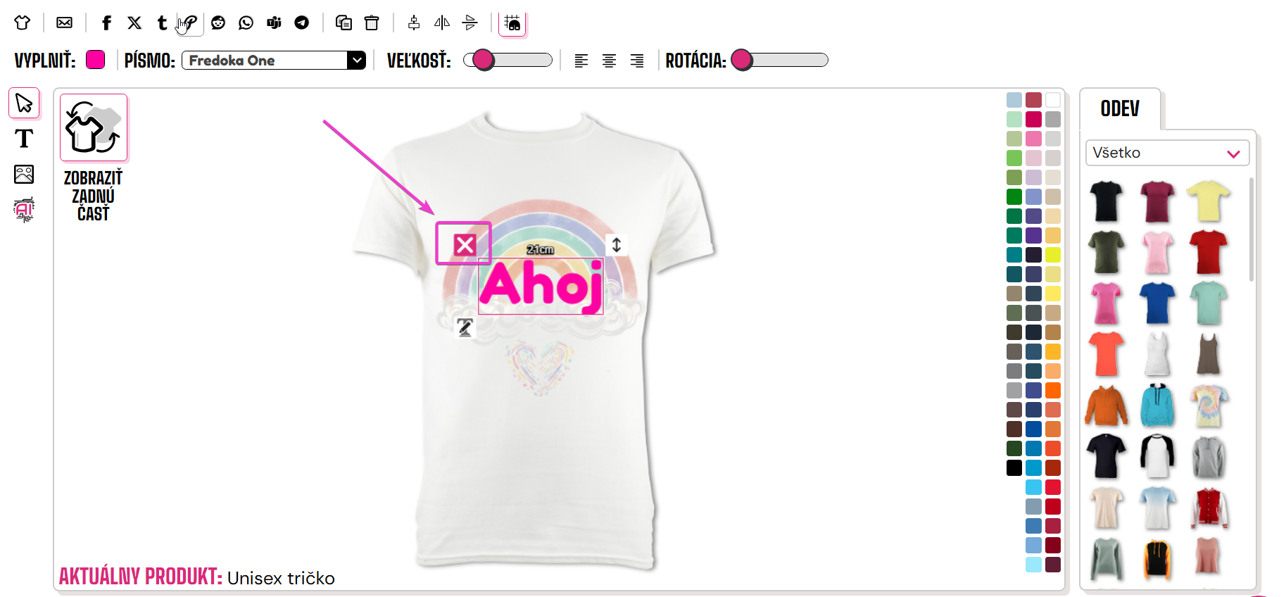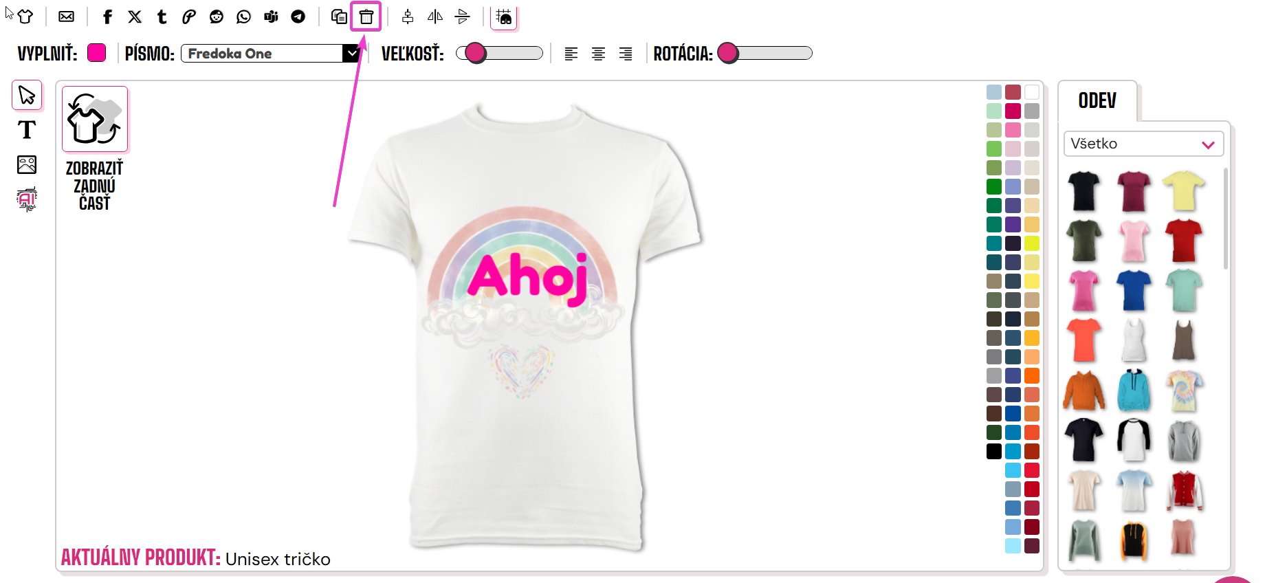 Ak chcete odstrániť nechcený obrázok alebo text, môžete kliknúť na ikonu koša v hornej časti dizajnéra.