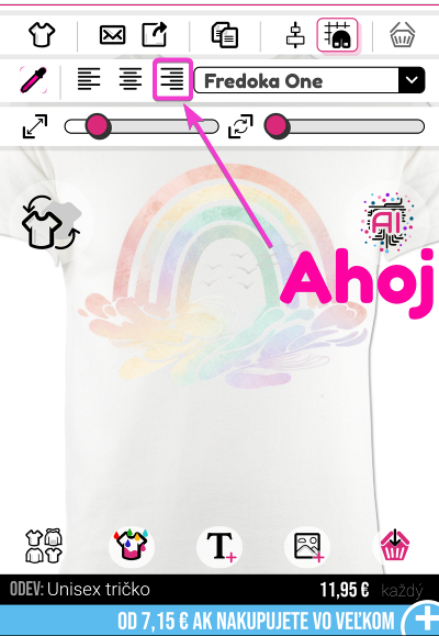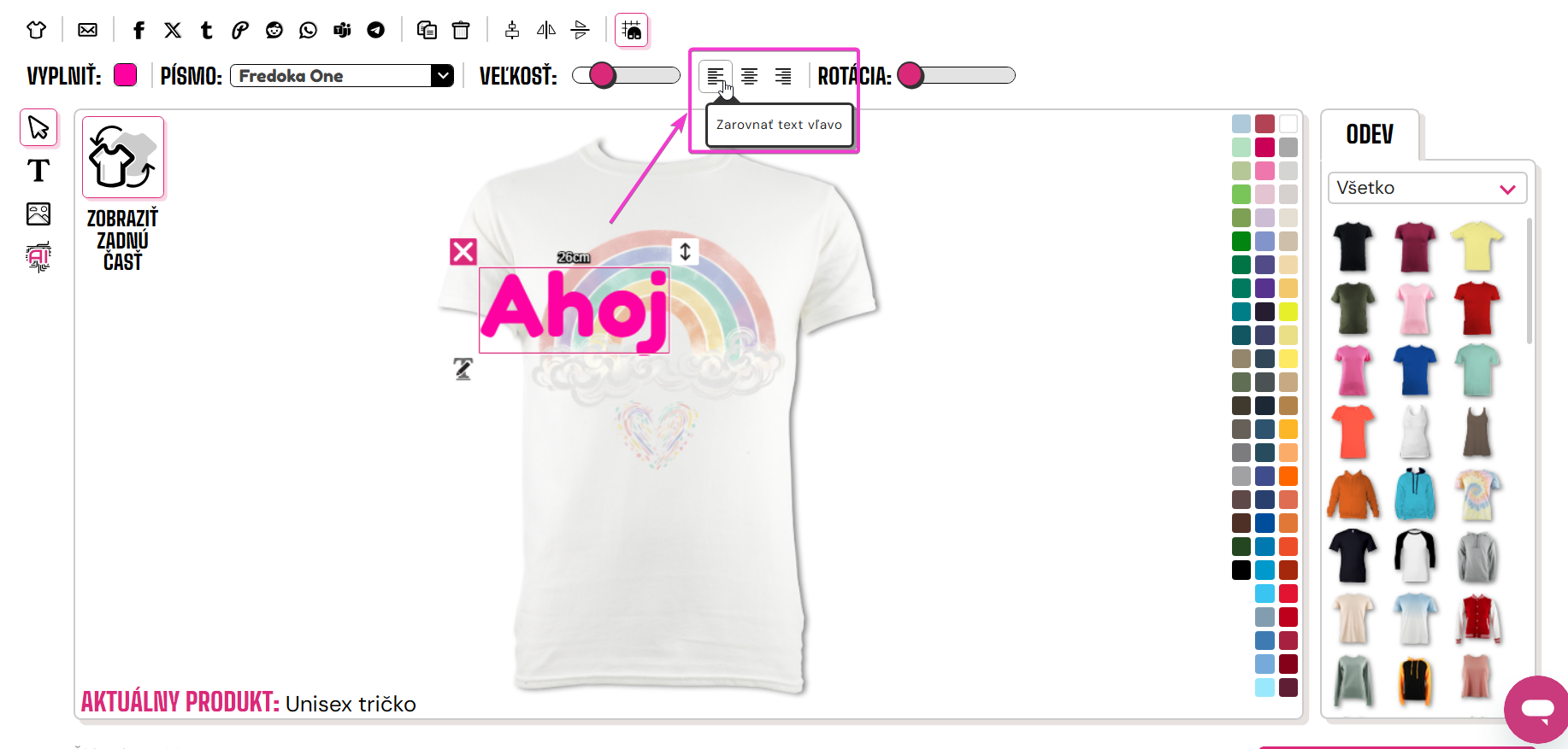 Ak chcete zarovnať text doľava/na stred/doprava, musíte kliknúť na príslušné tlačidlo.