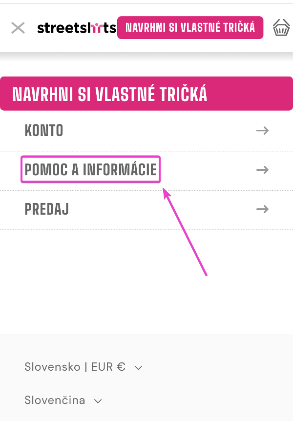 a potom vyberte "POMOC A INFORMÁCIE"