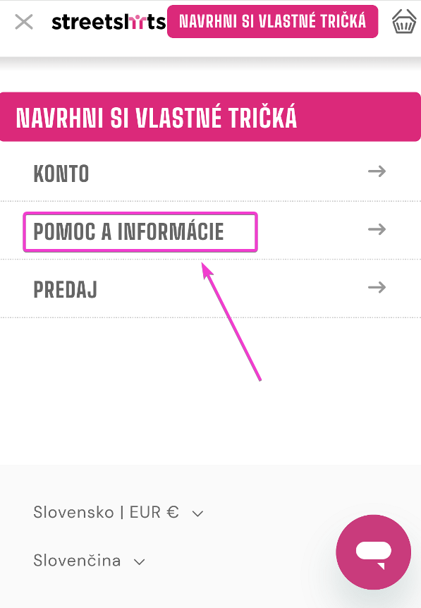 Potom kliknite na "POMOC A INFORMÁCIE"