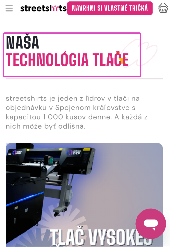 Ak sa chcete dozvedieť viac o našej technológii tlače, prejdite na pomoc a informácie v hornej časti obrazovky a kliknite na "TECHNOLÓGIA POTLAČE"