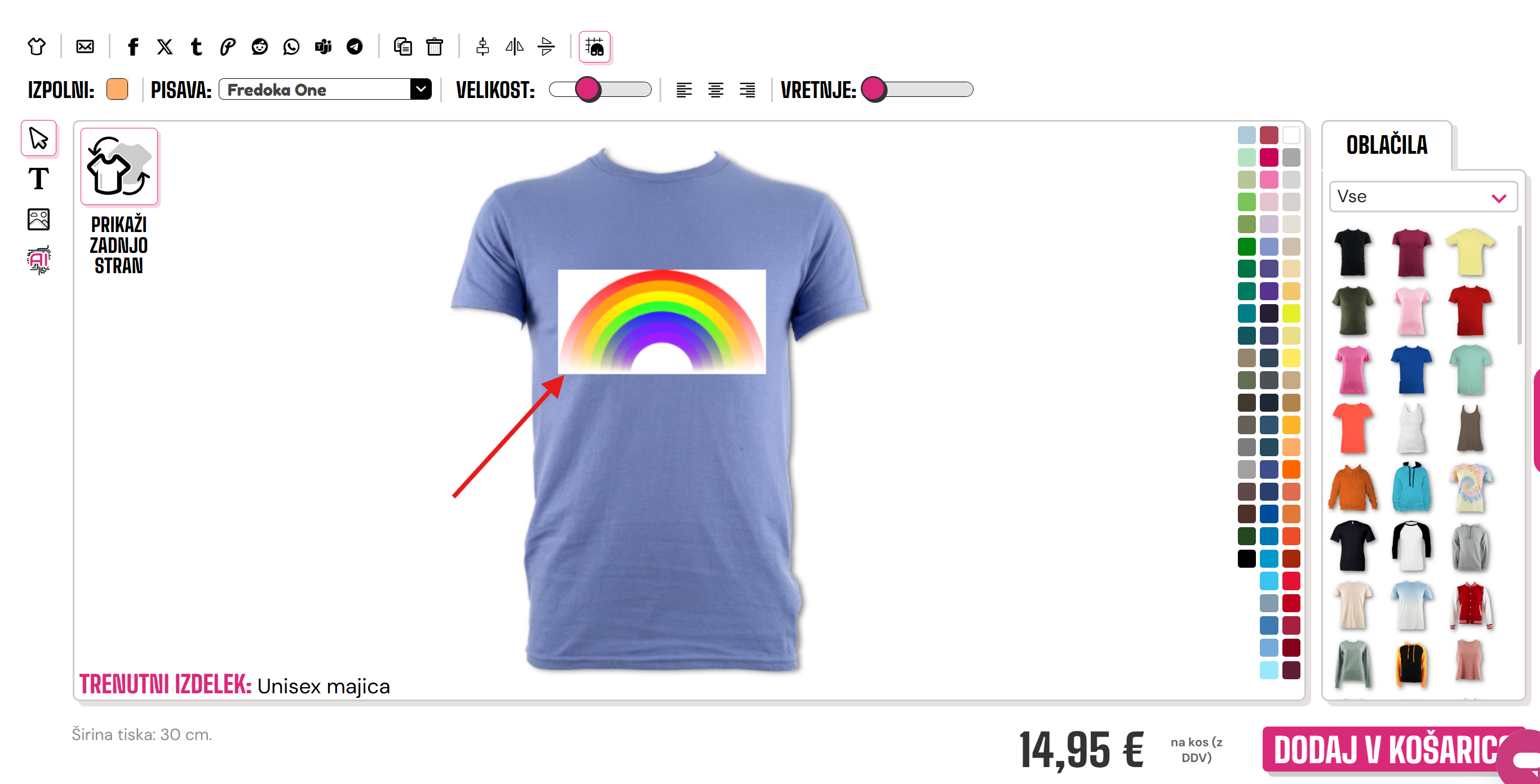 To se bo nato naložilo v oblikovalec za vas (med prenosom bo prikazana vrstica nalaganja). Ko bo prenos končan, bo vaša slika prikazana na majici.