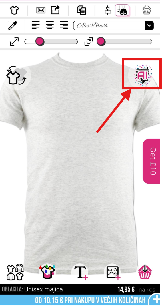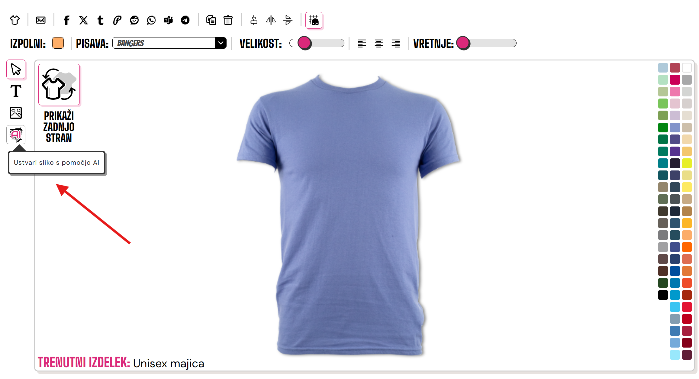Za začetek uporabe našega AI orodja kliknite na gumb AI na levi strani oblikovalnika.