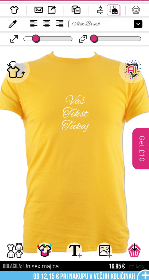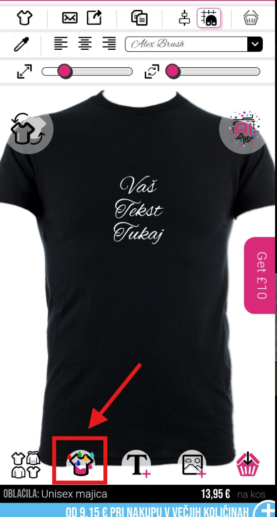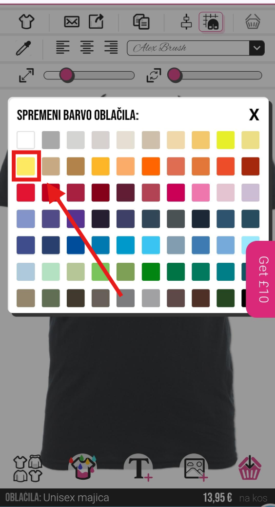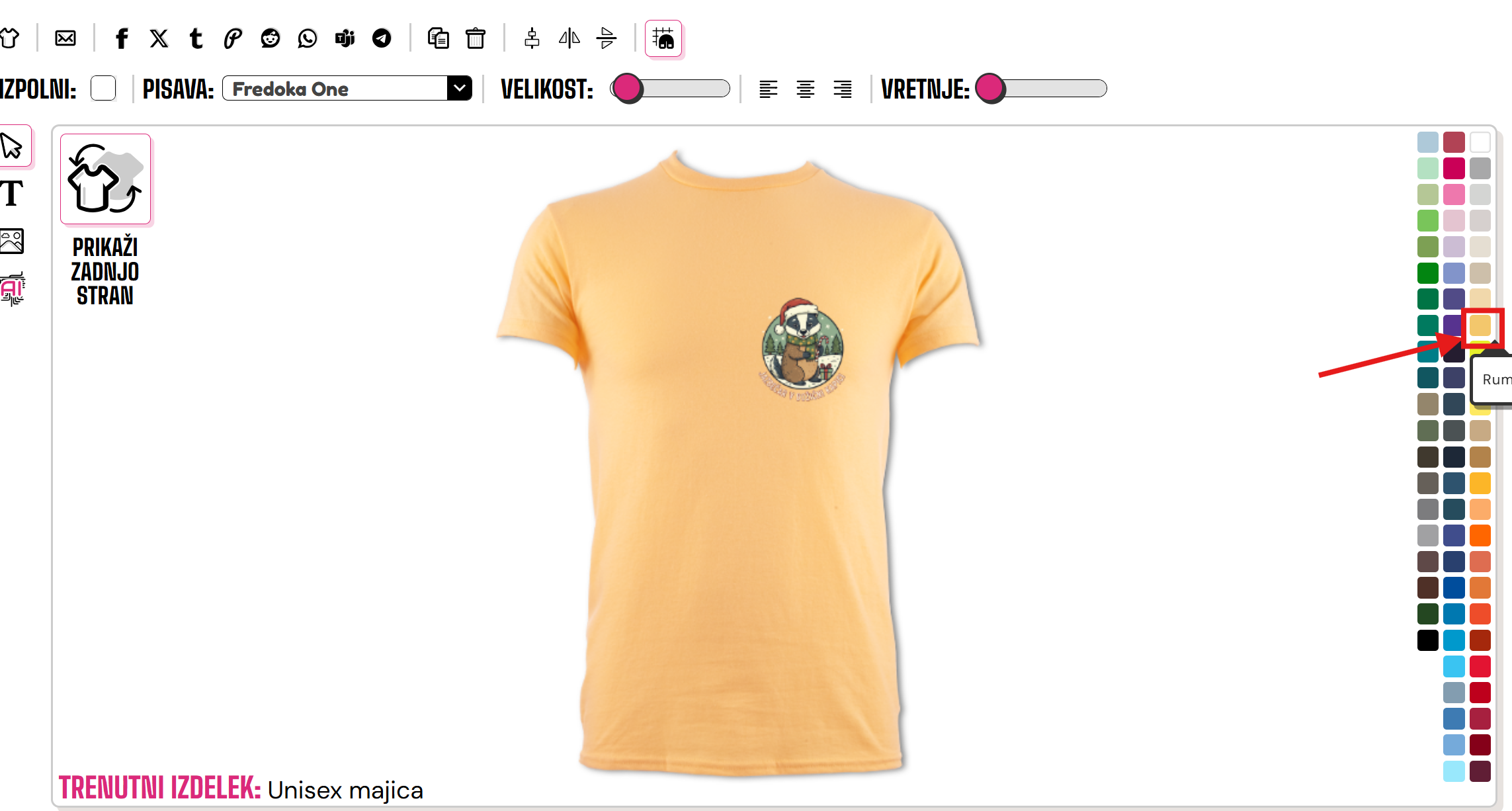 Za spremembo barve oblačila morate izbrati izbirnik barve majice na dnu oblikovalnika.