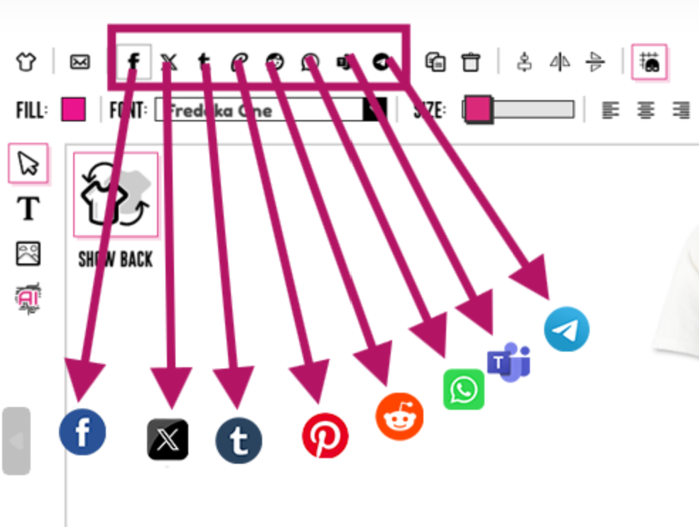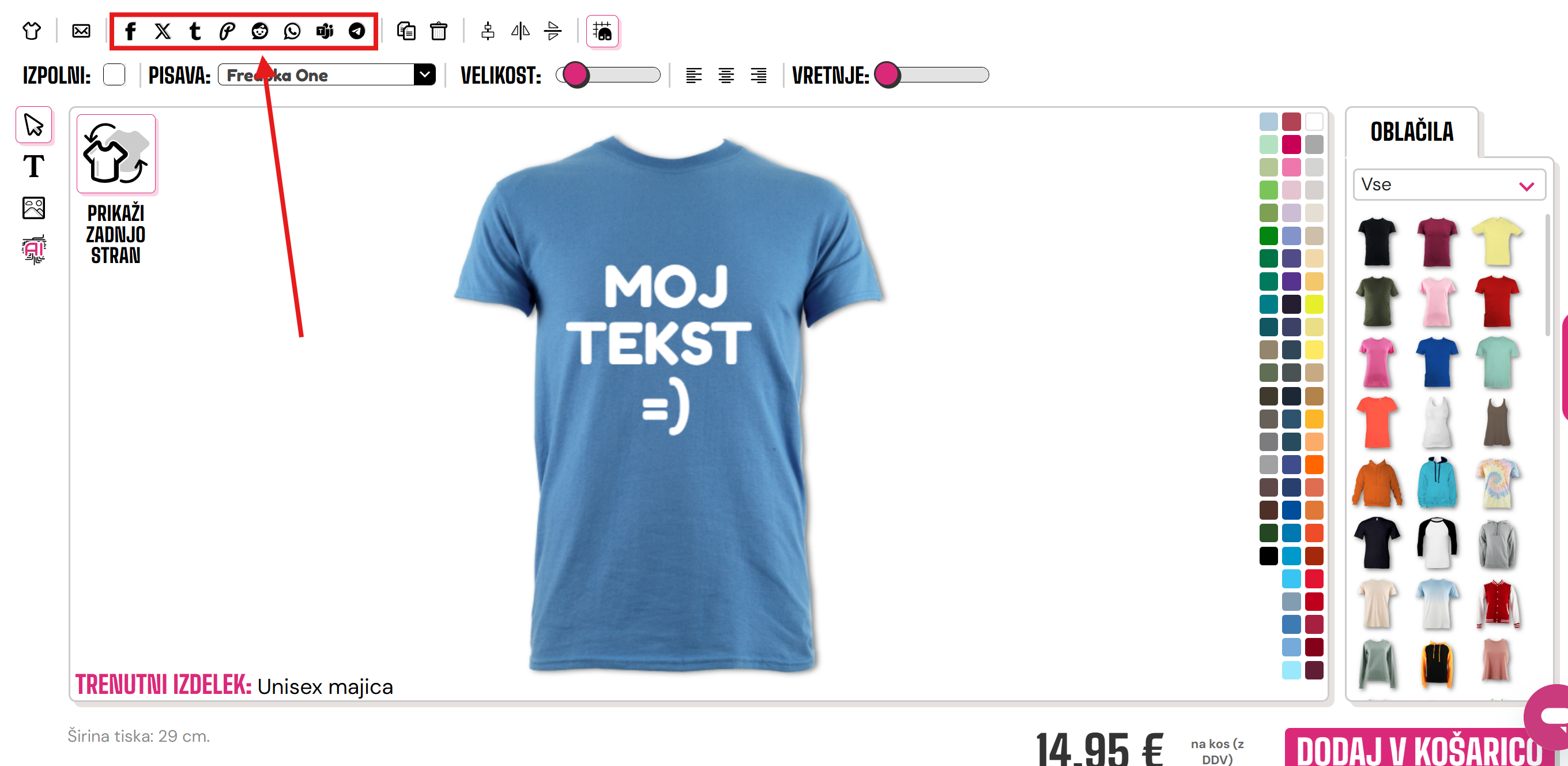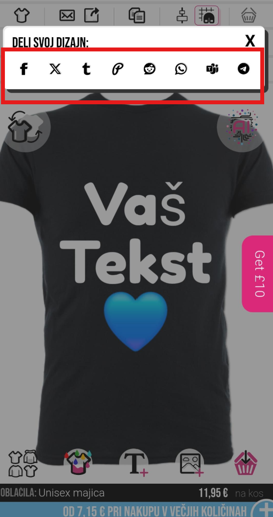 Za nalaganje svojih dizajnov na družbena omrežja morate klikniti na platformo, na katero želite deliti.