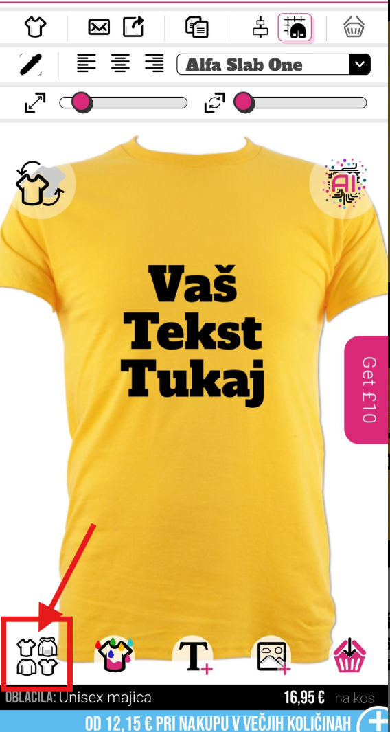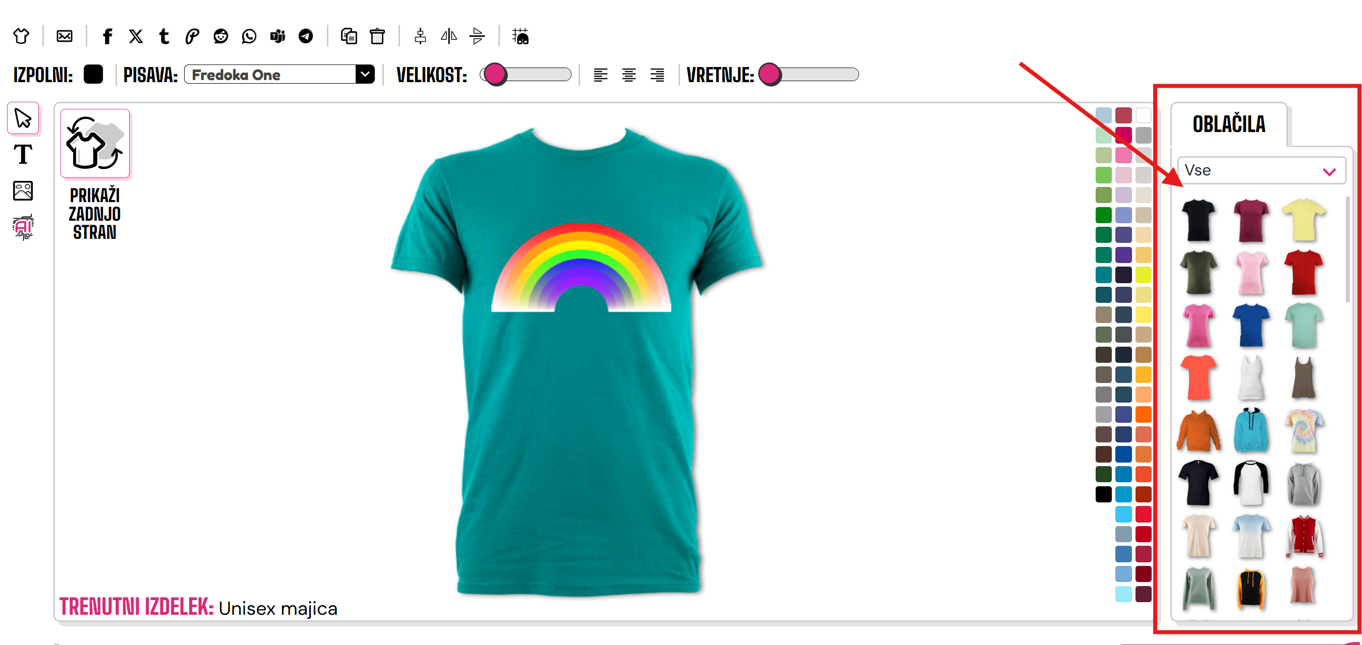 Za izbiro oblačila lahko izberete želeno oblačilo s klikom na ikono oblačila na dnu oblikovalnika