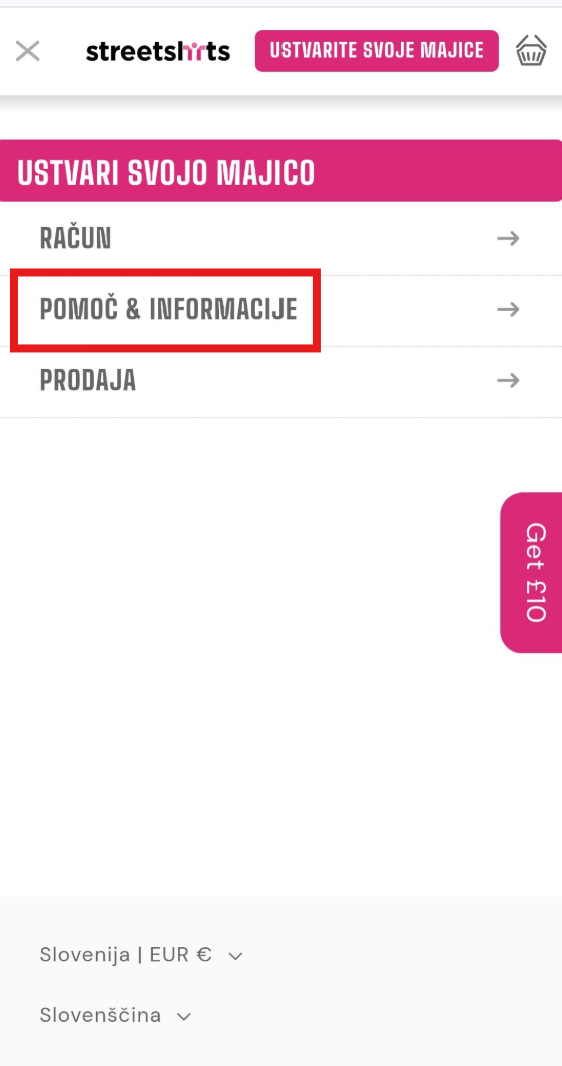 Nato kliknite "POMOČ IN INFORMACIJE"