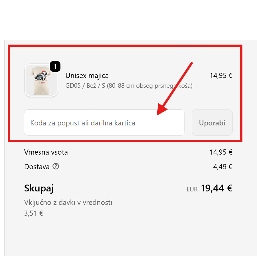 Če želite dodati bon k svojemu naročilu, pojdite v svojo košarico in se pomaknite navzdol, dokler ne najdete "Dodaj kodo bona"