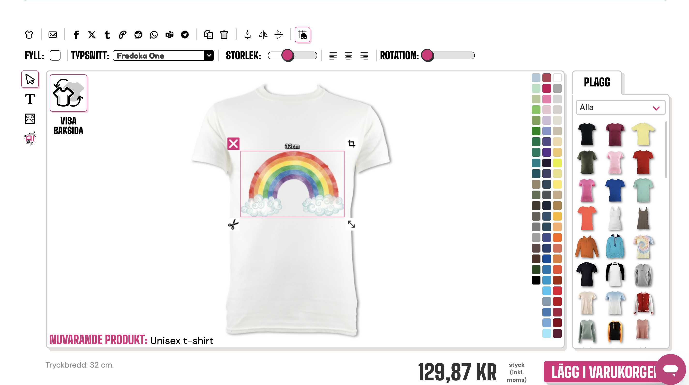 - För att säkerställa att vi levererar tröjor som matchar förhandsvisningarna, och att vi levererar exakt samma artikel igen om du beställer om två år, beräknas all storlek automatiskt när du designar online. Denna fil skrivs ut som den är till vår maskinpark. Vi har nyligen uppdaterat vår designprogramvara för att visa storleken i cm innan du beställer. Detta visas för dig ovanpå din bild eller text och i det nedre vänstra hörnet av designverktyget. Storleken som visas är storleken på den uppladdade bilden, så om din bild har stora transparenta områden som inte trycks, kan du se storleken på trycket genom att rita en ruta i storleken av det synliga området (se skärmdump nedan).