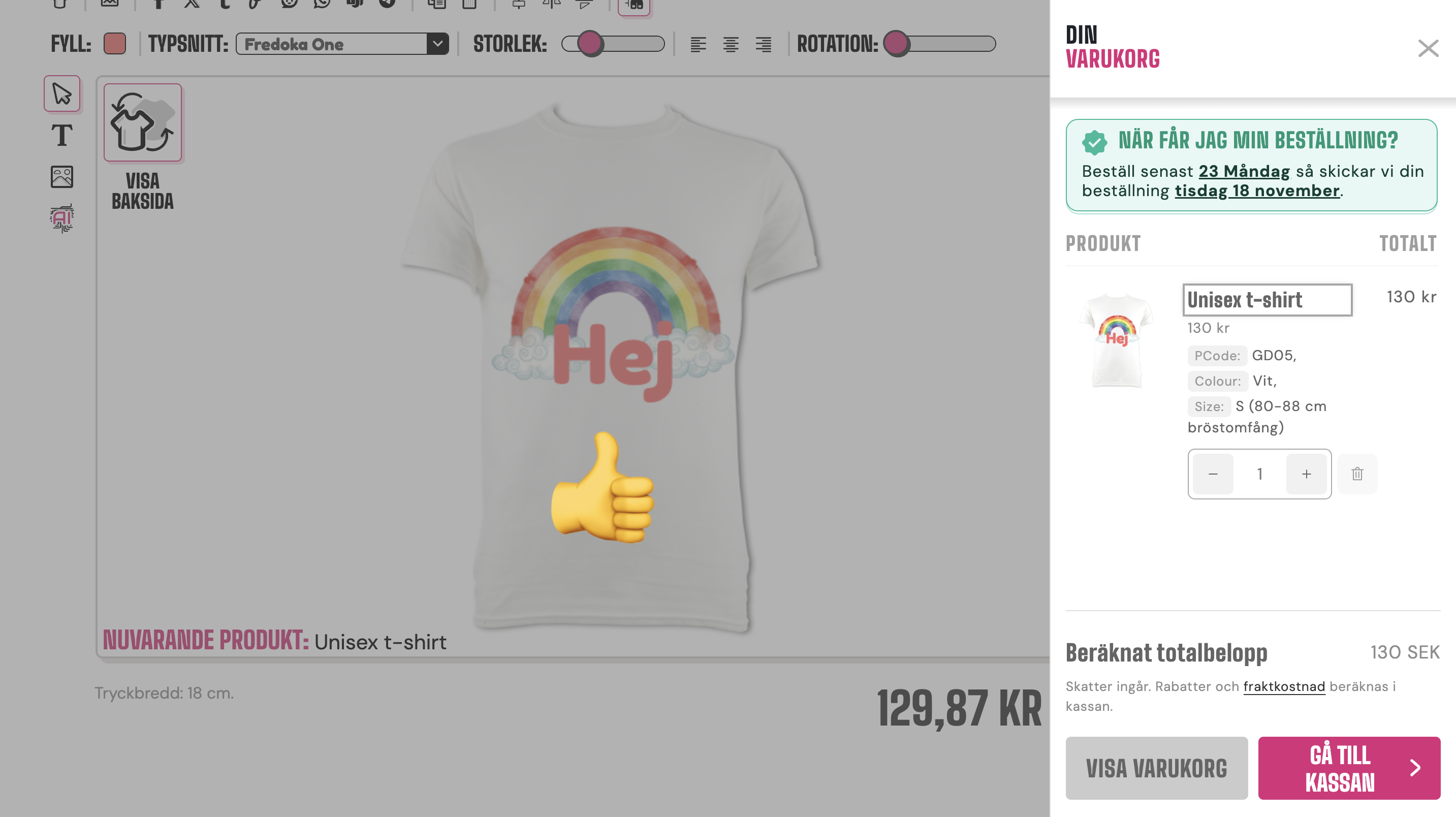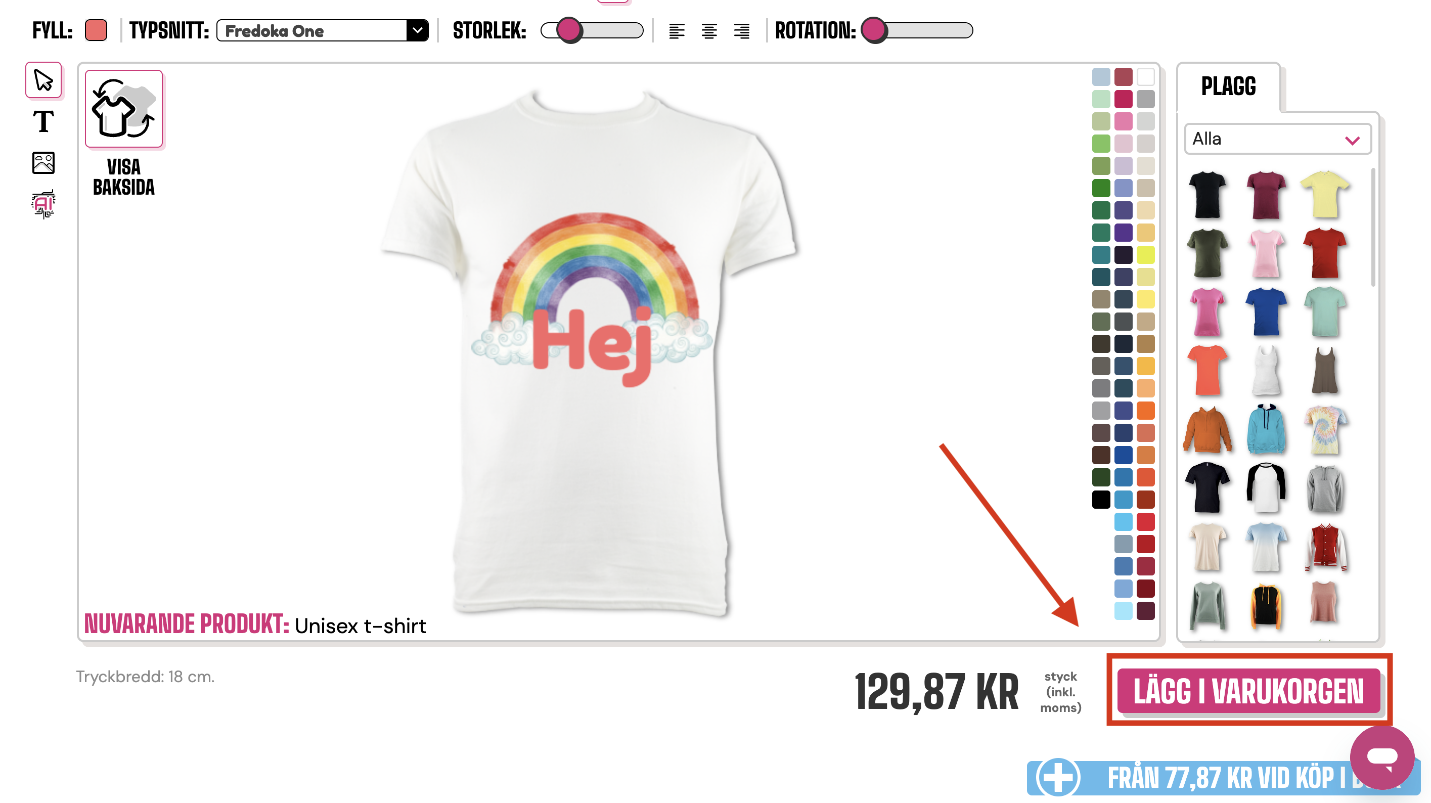 När du är nöjd med din design kan du klicka på lägg till i korgen här: