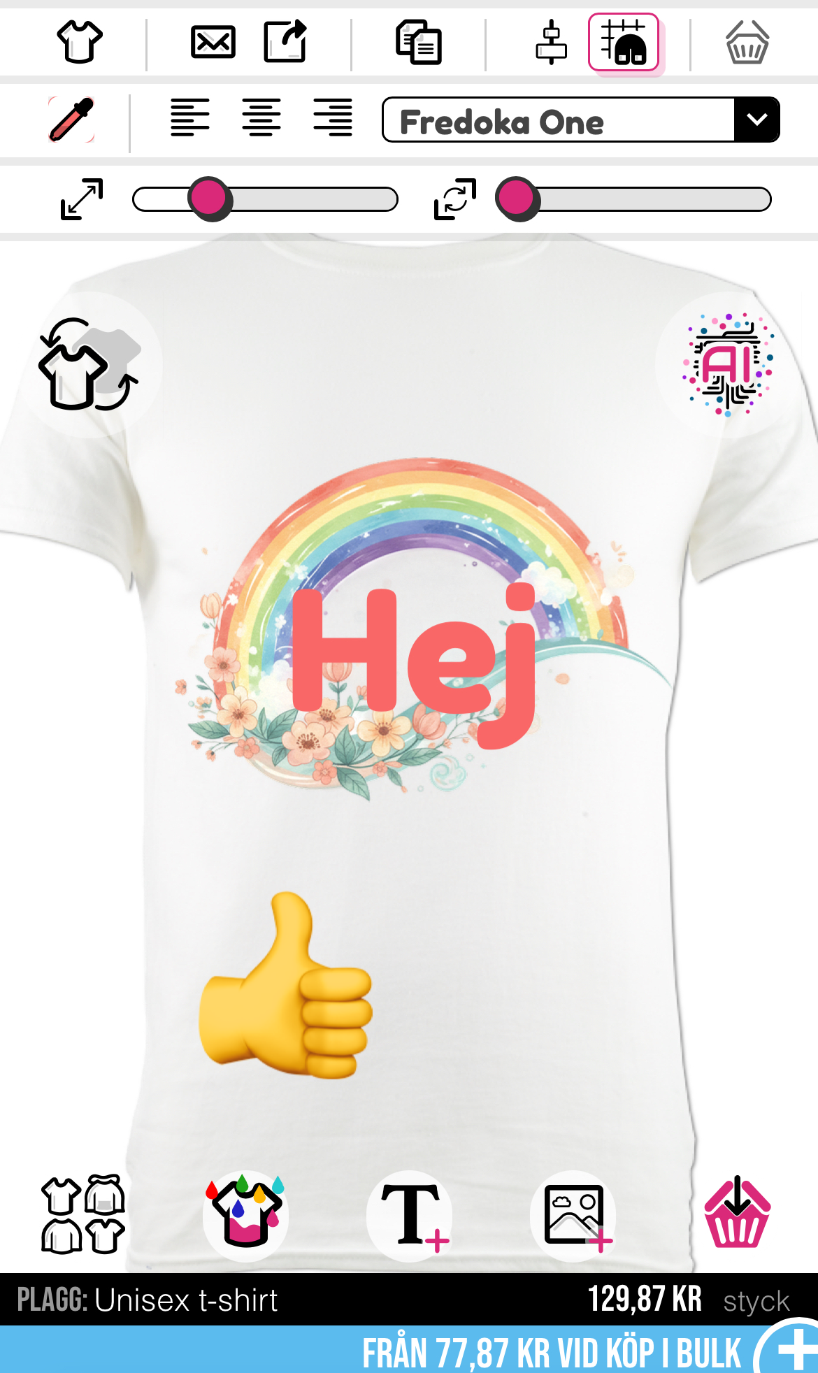Detta kommer sedan att laddas in i designverktyget för dig (det kommer att finnas en laddningsbar medan detta laddas ner) När detta har laddats ner kommer din bild att visas på t-shirten.
