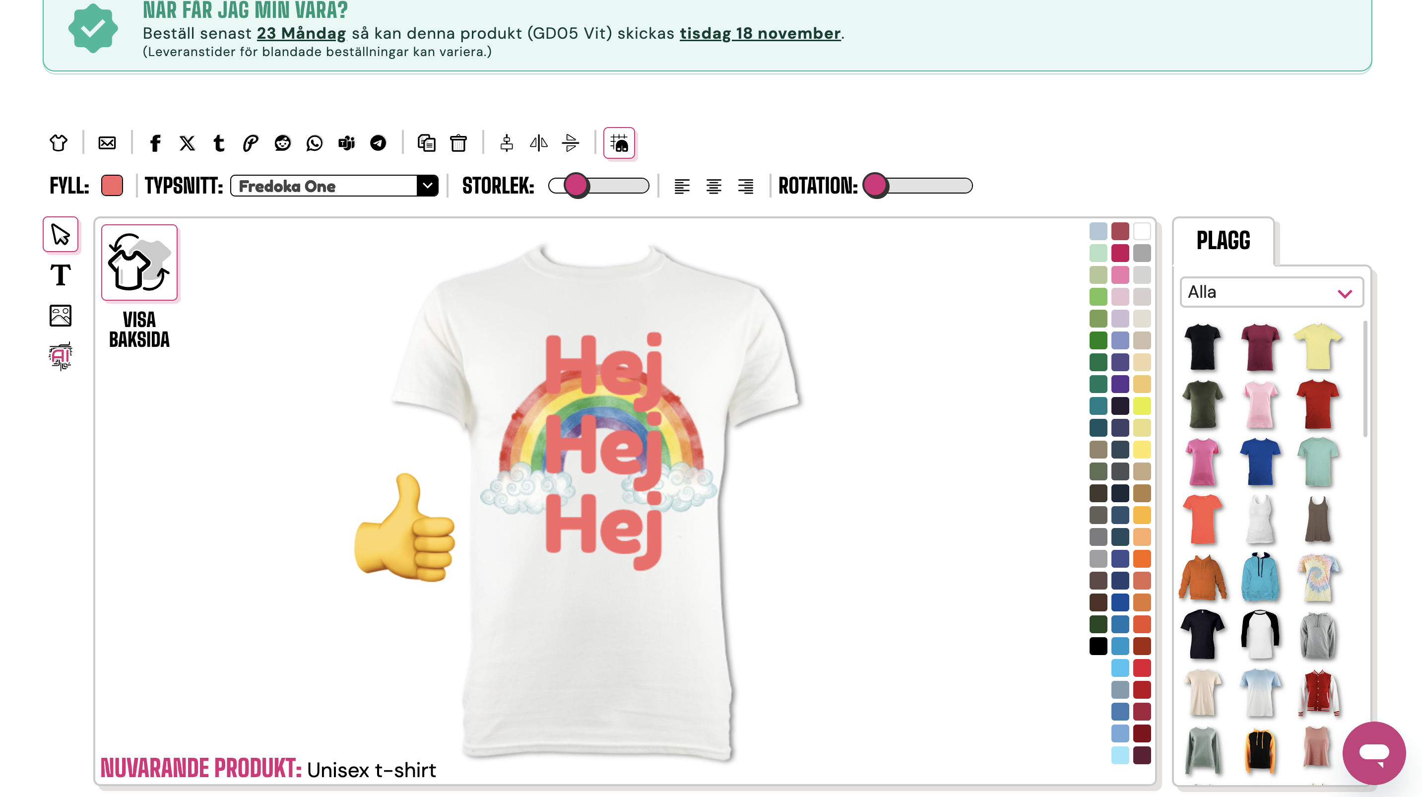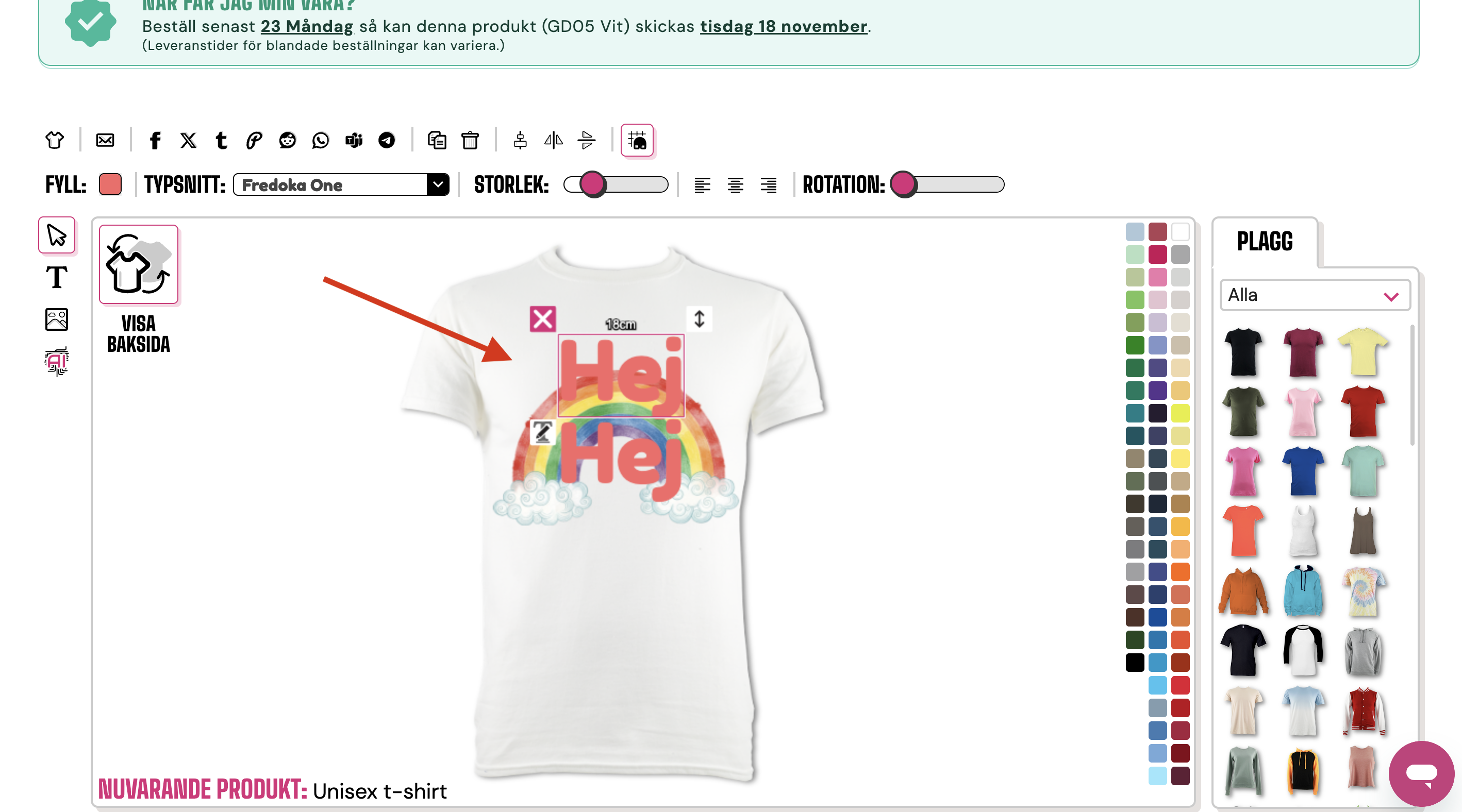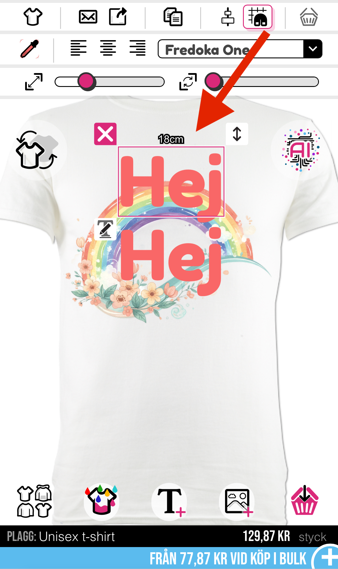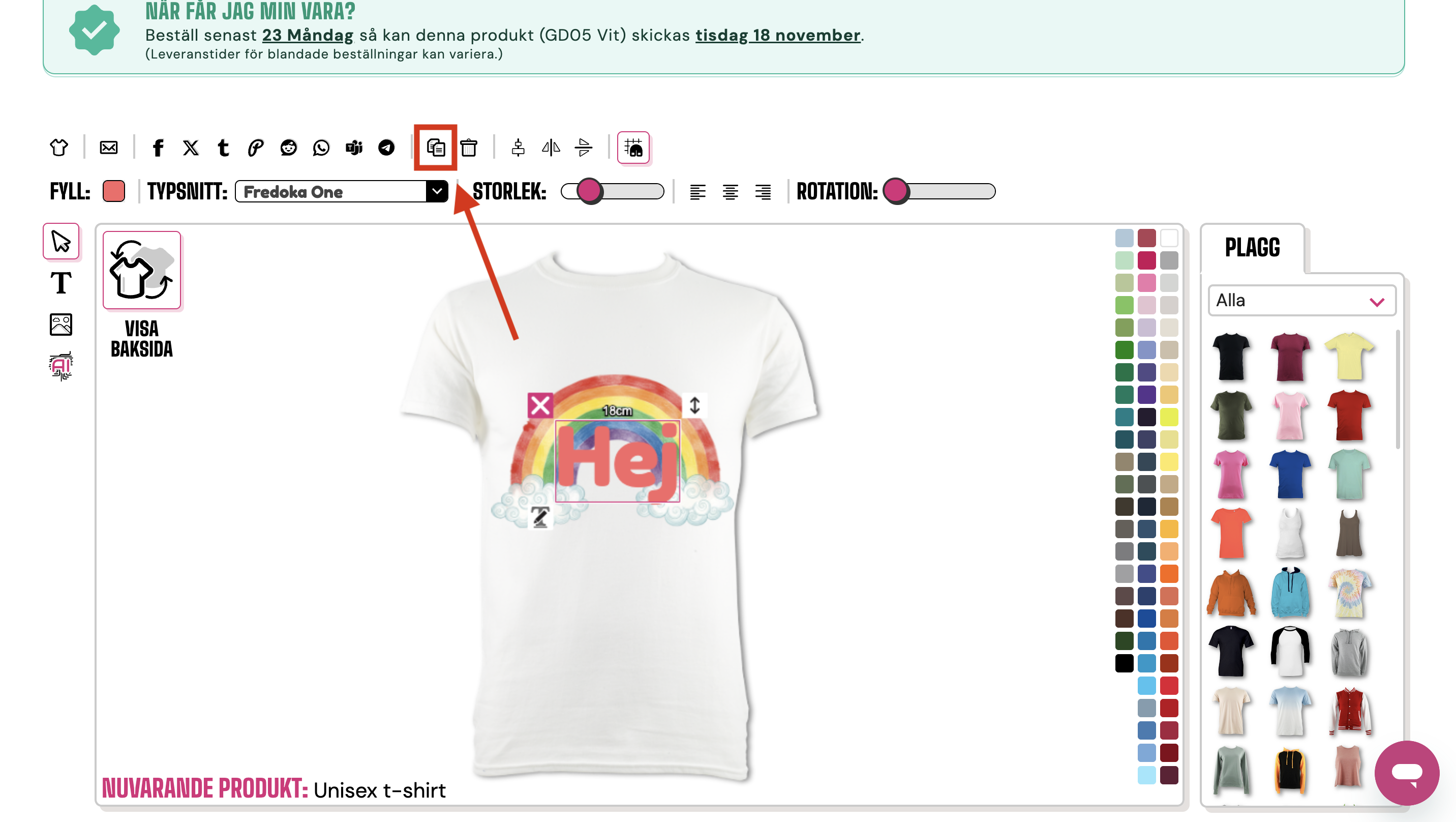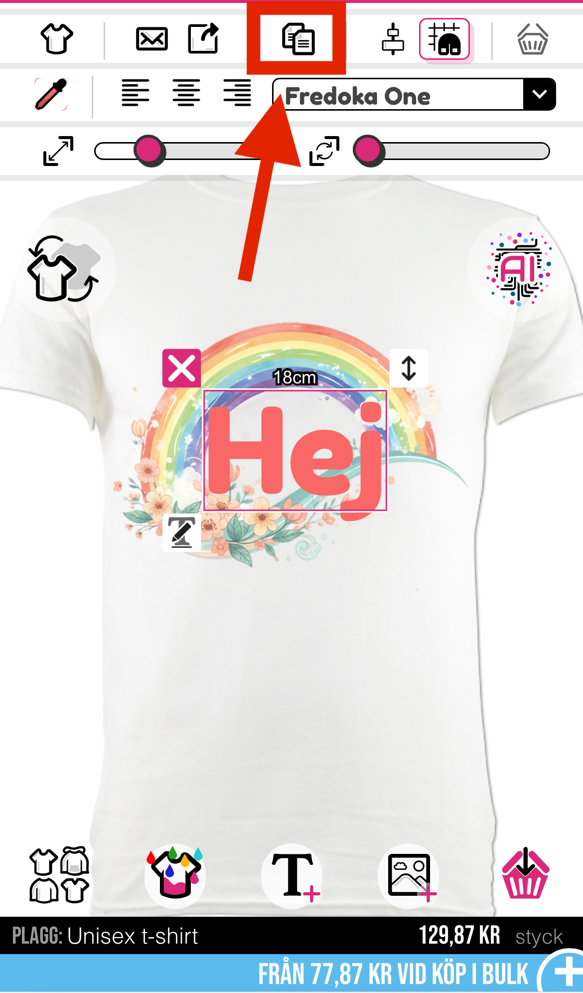 För att duplicera en bild eller text så att de alla matchar kan du klicka på kopieringsknappen som finns i designern. Se till att du har valt din bild eller text innan du trycker på denna knapp.
