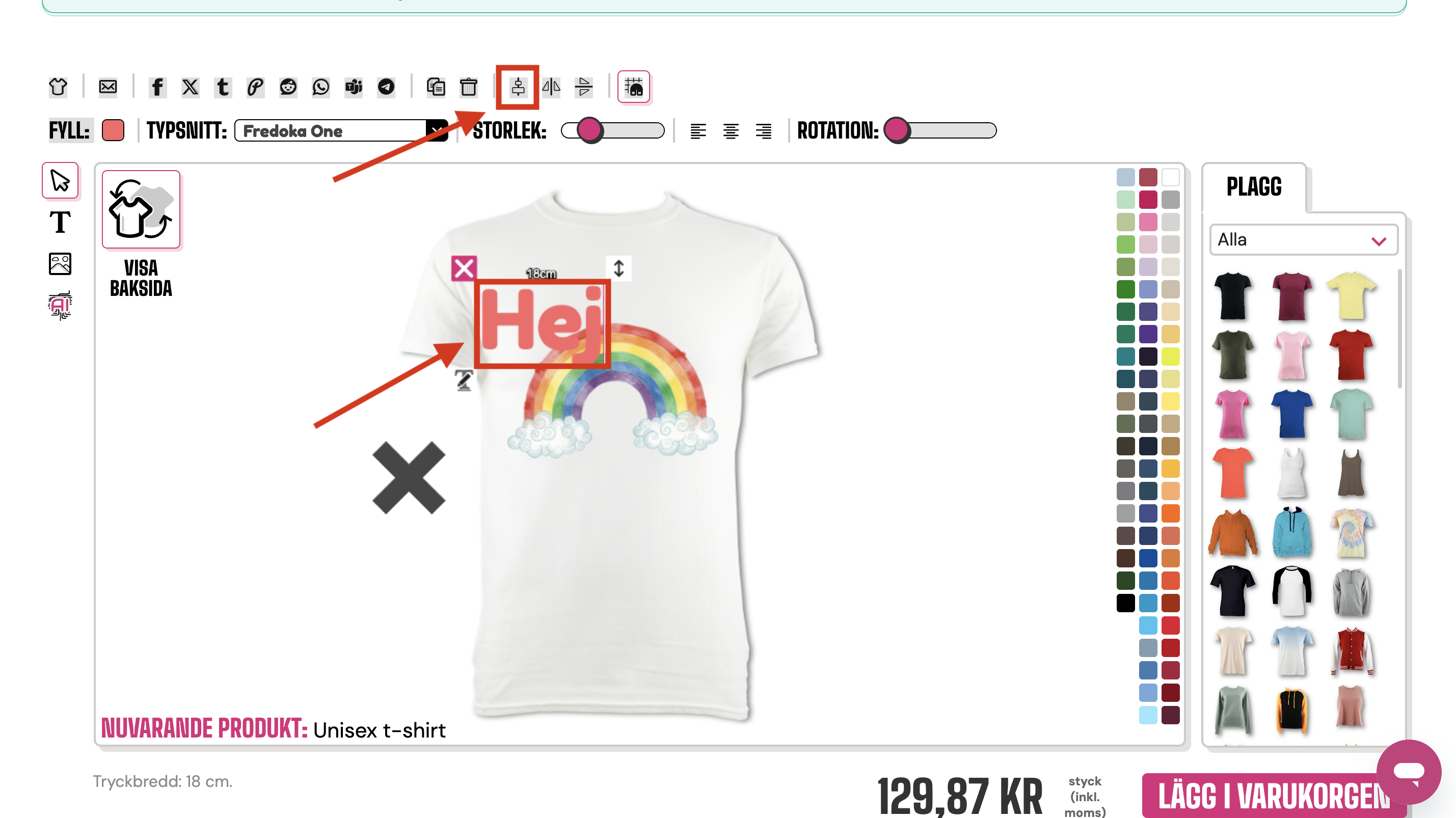 För att centrera din text eller bilder horisontellt kan du använda knappen för horisontell centrering som finns här:
