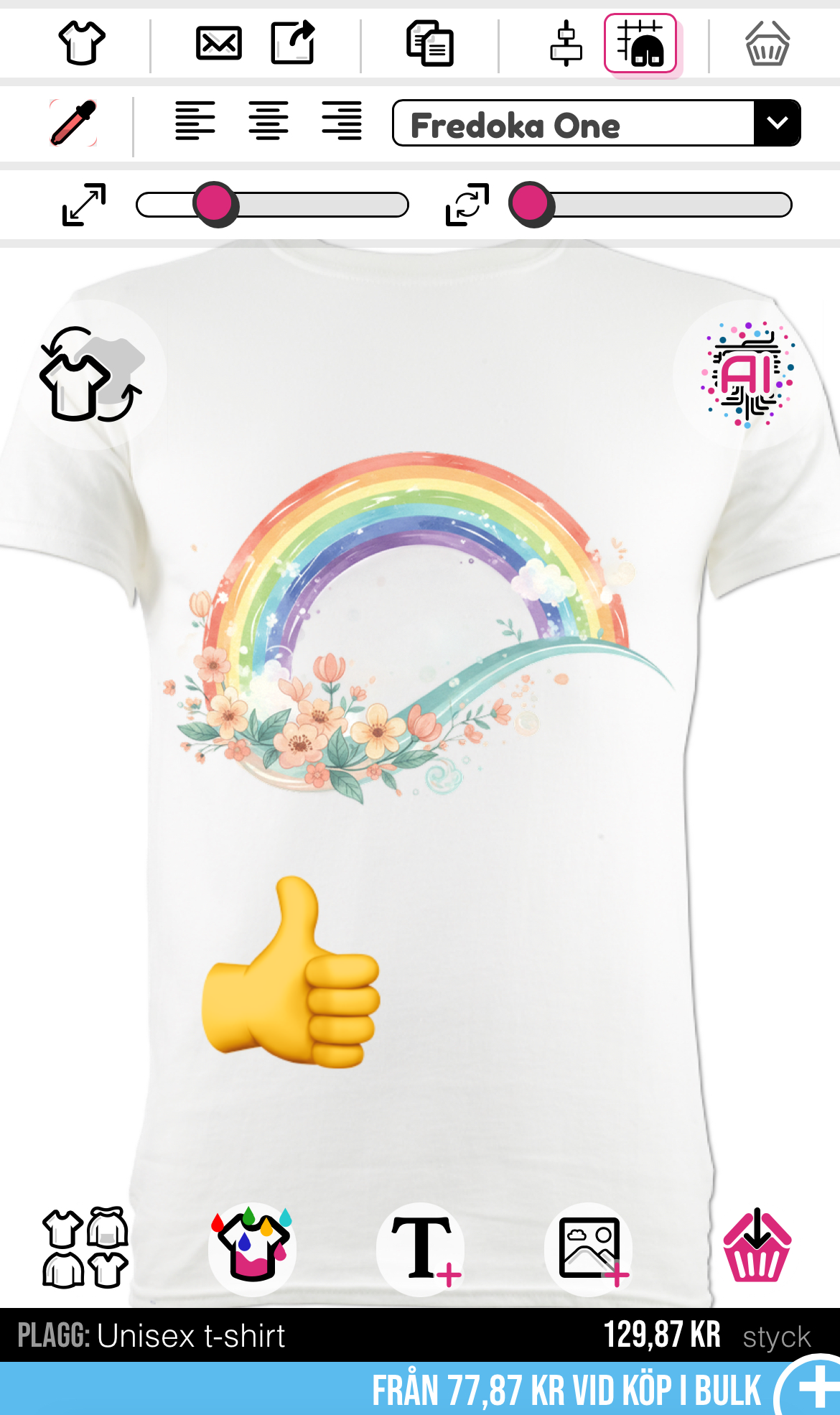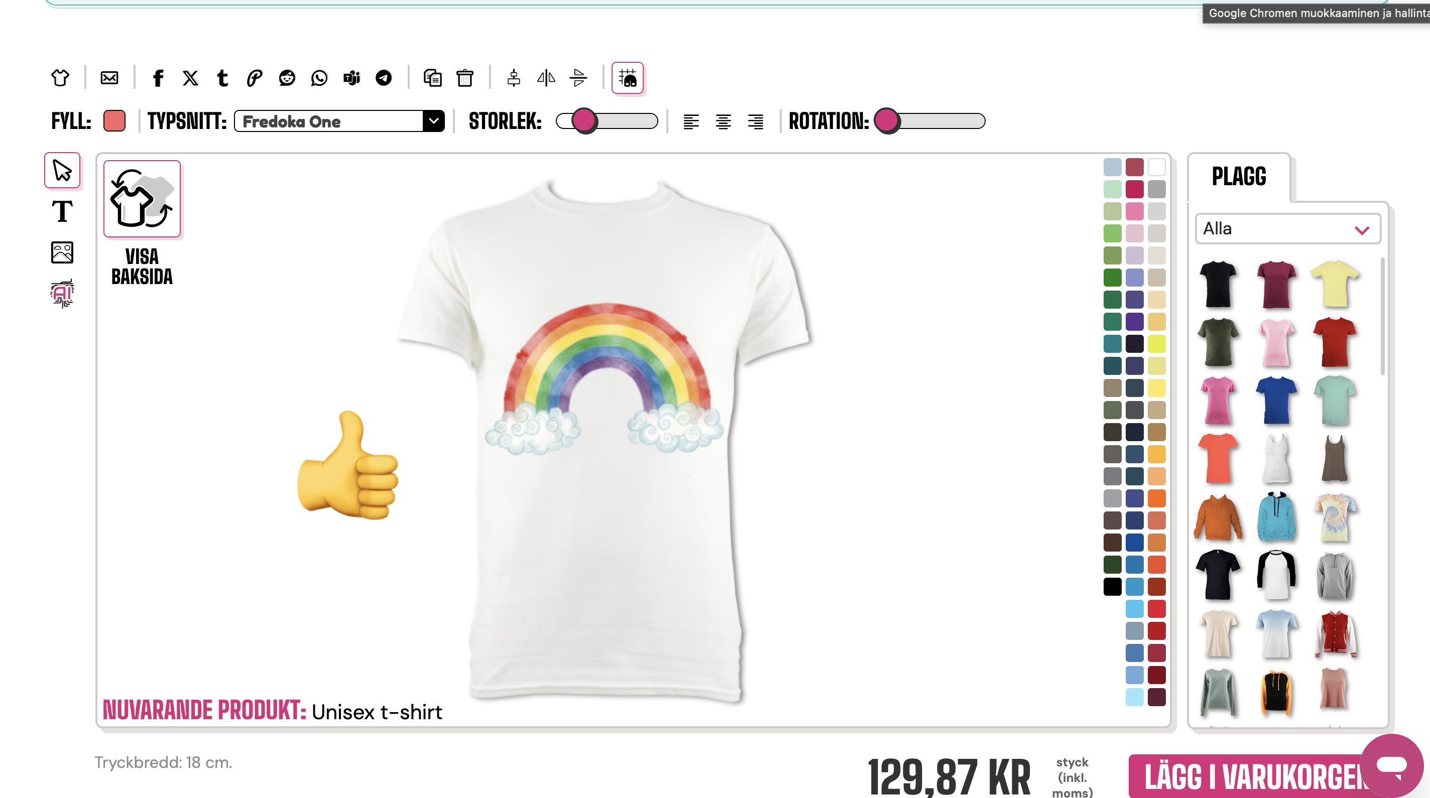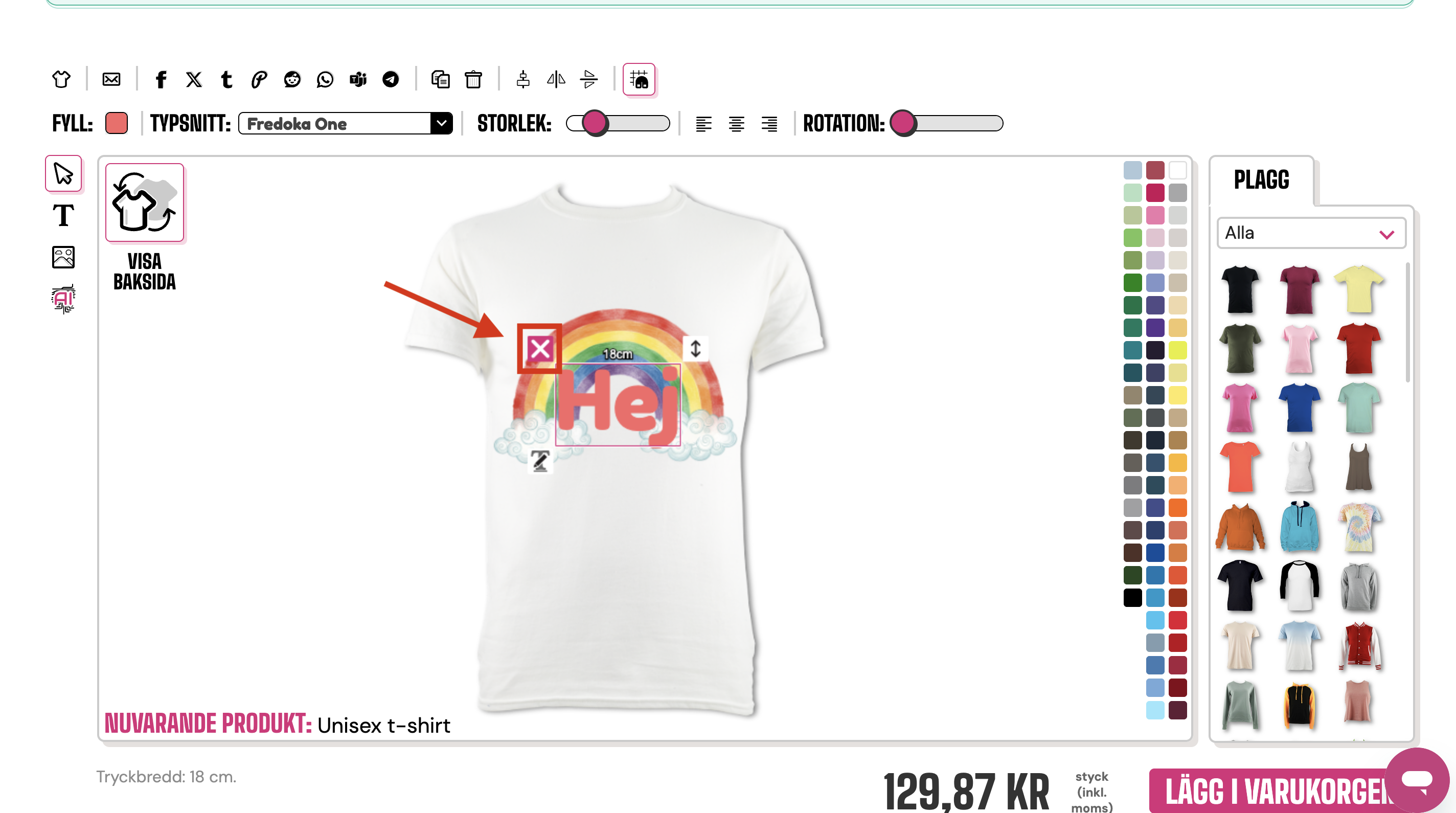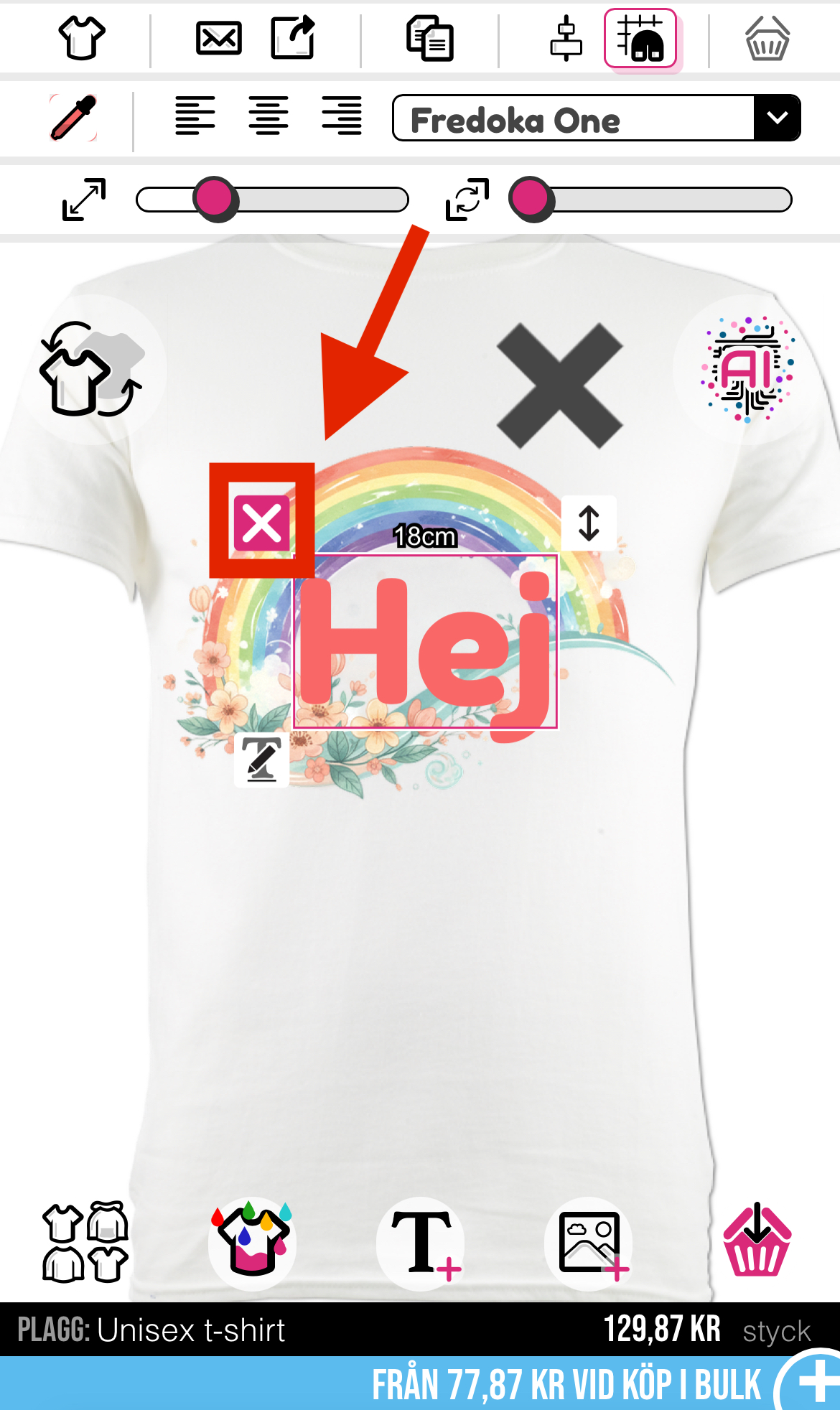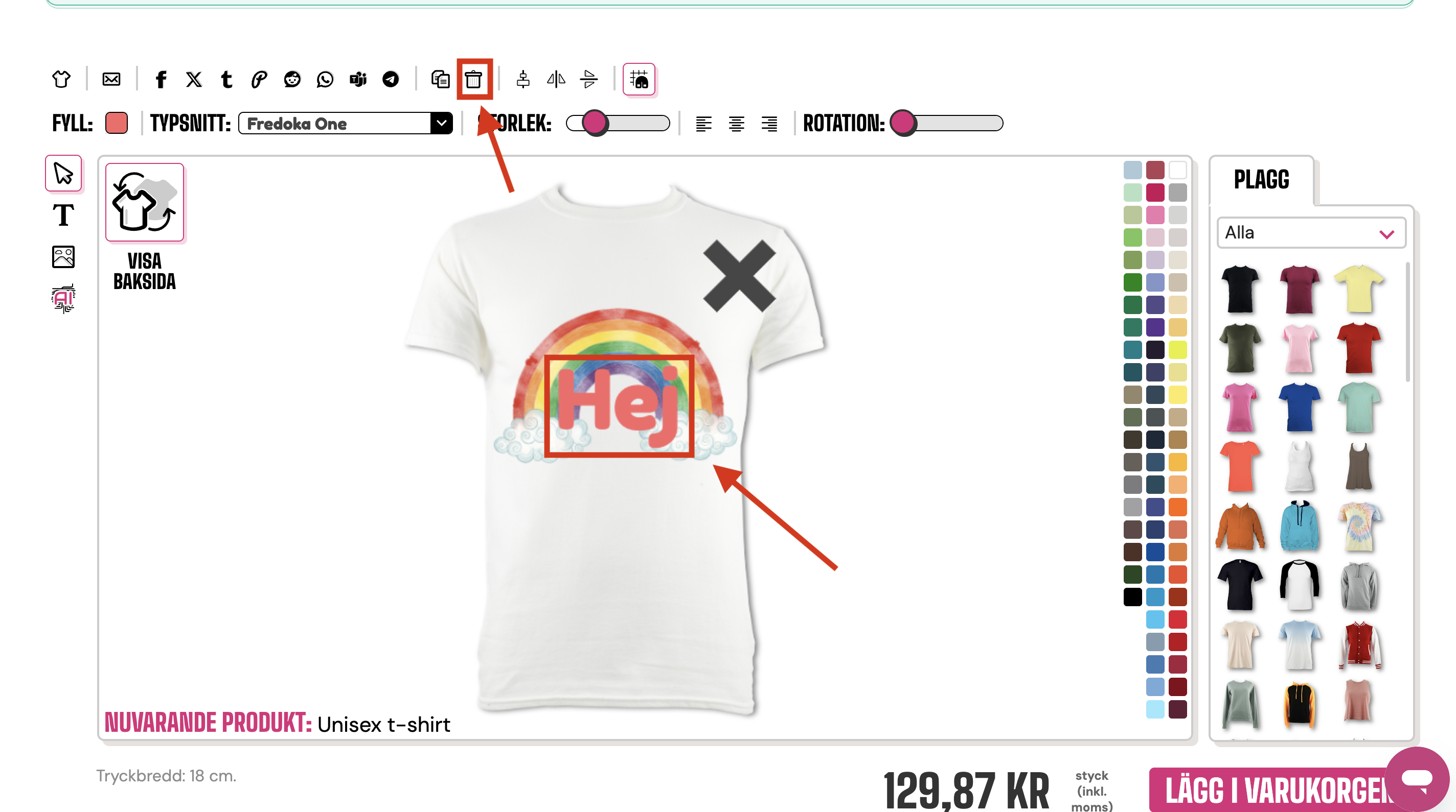 För att ta bort en oönskad bild eller text kan du klicka på papperskorgen högst upp i designverktyget.